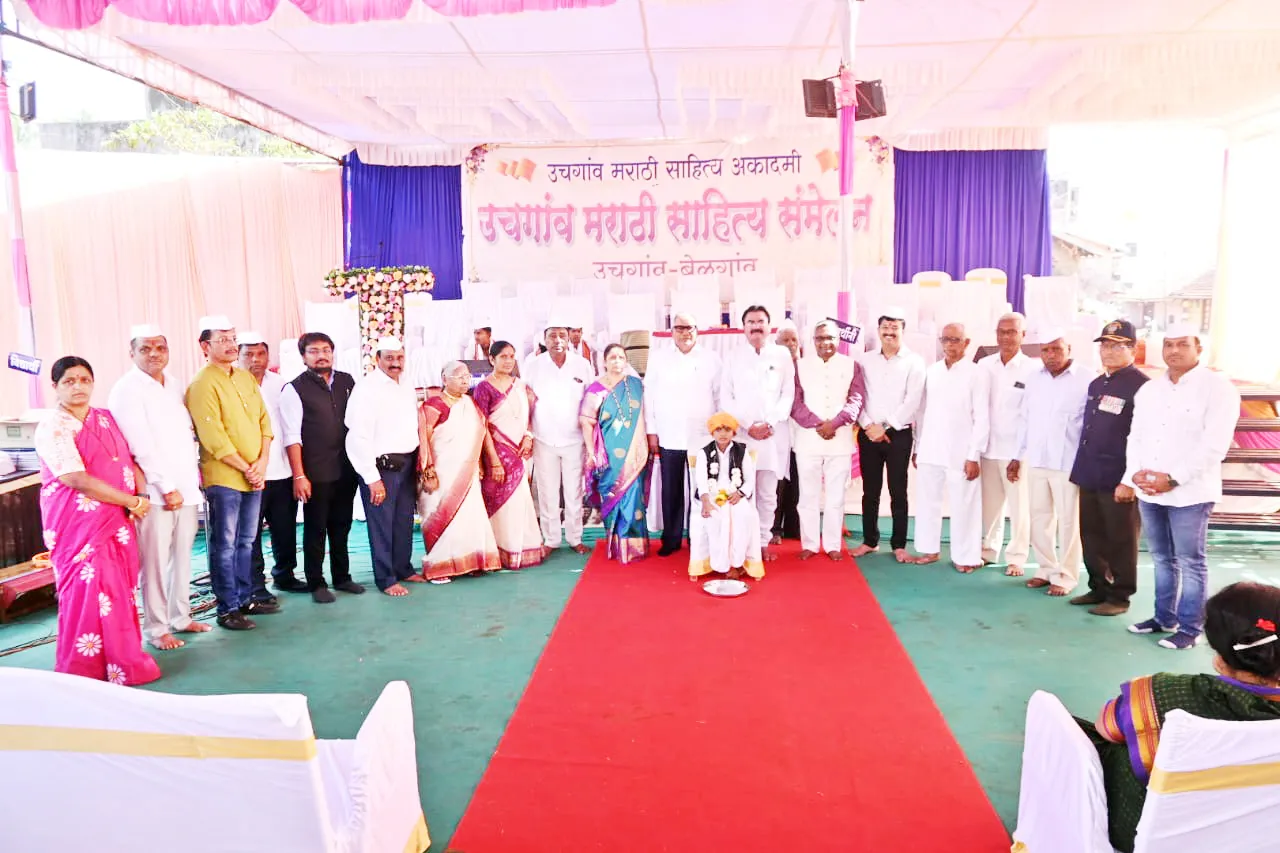उचगाव : उचगाव मराठी साहित्य अकादमी आयोजित 23 व्या उचगाव मराठी साहित्य संमेलनाने प्रतिवर्षी एक वेगळेपण जपत यावर्षी संतांची पाद्यपूजा करून संमेलनाचे उद्घाटन थाटात करण्यात आले. यावर्षीही विविधतेने नटलेली आणि बहरलेली ग्रंथदिंडी दिमाखात निघून लक्षवेधी ठरली. साहित्य संमेलनाचा सोहळा अनेक साहित्यिक आणि दिग्गज कवींसह हजारो साहित्यप्रेमींच्या लक्षणीय उपस्थितीत यशस्वी झाला. येथील गणेश विठ्ठल रखुमाई मंदिराच्या प्रांगणातील गांधी चौकात हा सोहळा आयोजित करण्यात आला होता. यासाठी भव्य शामियाना उभारण्यात आला होता.