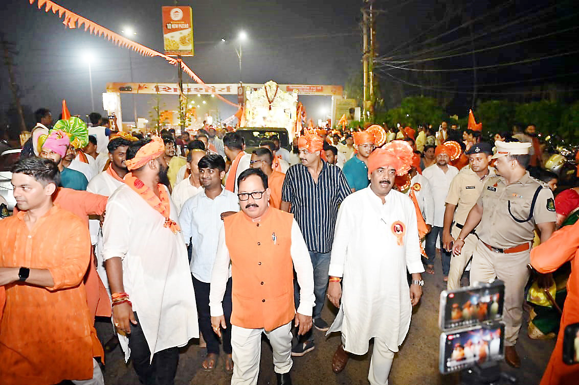 म्हापसा गांधी चौकाजवळ स्वराज गोमंतकतर्फे अखंड हिंदुस्तानच्या नामफलकाचे मंत्री सुभाष फळदेसाइं व सदानंद तानावडे यांच्या हस्ते अनावरण करण्यात आले. छत्रपती शिवाजी महाराजांबाबत स्वराज्य गोमंतक आगळेवेगळे कार्यक्रम प्रशांत वाळके, अमेय नाटेकर, जयेश थळी आदींच्या नेतृत्वाखाली करीत असता ते अभिनंदनास पात्र आहेत. बाल कलाकार व वयोवृद्ध या रॅलीमध्ये सहभागी झाले आहेत. आपण शिवप्रेमींना शुभेच्छा व्यक्त करतो, असे तानावडे म्हणाले. अखंड हिंदुस्तानचे आराध्य दैवत छत्रपती शिवाजी महाराज यांच्या शौर्य शोभायात्रेला आज हजारो शिवप्रेमी उपस्थित होते. स्वराज गोमंतकने म्हापशात एक आगळावेगळा बॅनर तयार केला आहे. अखंड हिंदूस्तान असे नामकरण करण्यात आले आहे. छत्रपती शिवाजी महाराज आमचे प्रेरणास्थान आहेत. महाराजांचा पराक्रम सर्वांना माहित आहे. हिंदू धर्माच्या रक्षणासाठी शिवाजी महाराजांनी सदैव पुढाकार घेऊन एक चांगले प्रशासन दिले. ते आमचे आराध्य दैवत आहे, असे ते म्हणाले.