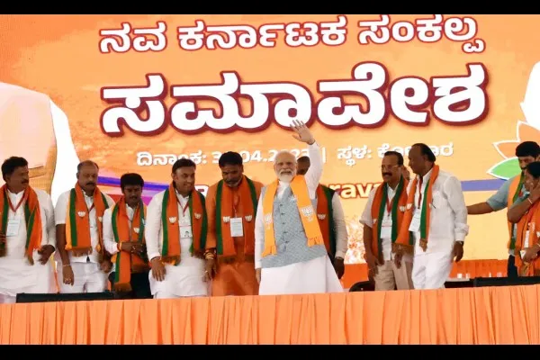 एका दिवसात चार जिल्ह्यांत प्रचार शनिवारपासून पंतप्रधान मोदी दोन दिवसांच्या राज्य दौऱ्यावर होते. शनिवारी त्यांनी बेळगाव, बिदर, विजापूर आणि बेंगळूर जिल्हा दौरा केला होता. तर रविवारी म्हैसूर, रामनगर, कोलार आणि दावणगेरे जिल्ह्यांचा दौरा केला. सायंकाळी म्हैसूरमध्ये ते रोड शोमध्ये सहभागी झाले.