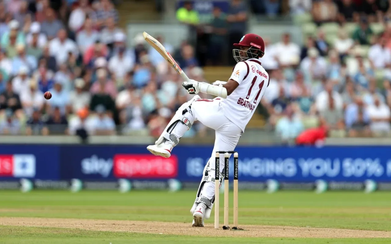 संक्षिप्त धावफलक: विंडीज प. डाव- चहापानापर्यंत 53 षटकात 5 बाद 194 (ब्रेथवेट 61, लुईस 26, मॅकेंझी 12, अॅथनेझ 2, हॉज 13, होल्डर खेळत आहे 42, डिसिल्वा खेळत आहे 35, अवांतर 3, अॅटकिनसन 2-49, वूड 2-36, वोक्स 1-44)