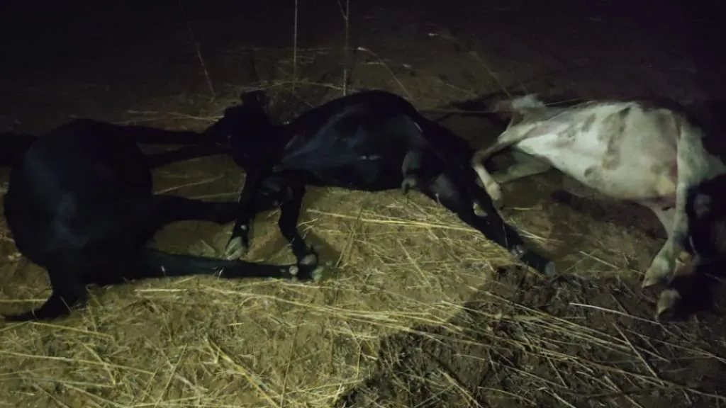 शुक्रवारी सायंकाळी सहाच्या सुमारास तालुक्यातील येळवी भागात जोराचा वादळी वारे सुटले. ईश्वर डोंबाळे व त्यांचा मुलगा पांडुरंग डोंबाळे हे शेतातच शेळ्या व मेंढया चारत होते. सहाच्या सुमारास पाऊस व वादळी वारे सुरू झाल्याने ईश्वर डोंबाळे हे त्यांच्या शेळ्या व मेंढया घेवून घराकडे जात असताना अचानक वादळी वाऱ्याने विजेची तार तुटली व शेळ्या व मेंढ्याच्या अंगावर पडली. यात एक मेंढी व दोन शेळ्यांचा विजेच्या धक्याने जागीच मृत्यू झाला. सुदैवाने ईश्वर डोबांळे हे बचावले. घटनेची माहिती मिळताच पोलीस पाटील वंदना सचिन माने, कोतवाल बाळासो चव्हाण, वायरमन सहाय्यक बापू चव्हाण यांनी घटनास्थळी भेट दिली.