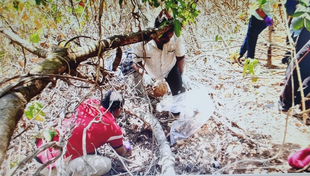 बेळगाव : खंडणीसाठी खणदाळ (ता. रायबाग) येथील युवकाचे अपहरण करून त्याचा भीषण खून केल्याच्या आरोपावरून हारुगेरी पोलिसांनी यापूर्वीच सहा जणांना अटक केली आहे. आता खून झालेल्या तरुणाचा सांगाडा शोधण्यात पोलिसांना यश आले असून विशाळगड आंबाघाट परिसरात शुक्रवारी सांगाडा सापडला आहे. जिल्हा पोलीसप्रमुख डॉ. संजीव पाटील यांनी ही माहिती दिली आहे. खणदाळ येथील बाळाप्पा भूपाल आजुरे (वय 45) या तरुणाचे 18 ऑगस्ट 2022 रोजी अपहरण करण्यात आले होते. अपहरणानंतर 50 लाख रुपये खंडणी मागण्यात आली होती. बाळाप्पाचे वडील भूपाल यांचेही 30 जानेवारी 2023 रोजी अपहरण करण्यात आले होते. पोलीससूत्रांनी दिलेल्या माहितीनुसार भूपाल आजुरे (वय 70) या वृद्धाचे अपहरण करून जांबियाचा धाक दाखवून 15 लाख रुपयांची खंडणी मागण्यात आली. कुटुंबीयांनी 15 लाख रुपये देऊन वृद्धाची सुटका करण्याची मागणी केली. गुन्हेगारांनी पुन्हा 30 लाख रुपयांची मागणी केली. 30 लाख रुपये दिले नाहीत तर वृद्धाचा मृतदेह पहावा लागेल, असे धमकावण्यात आले.