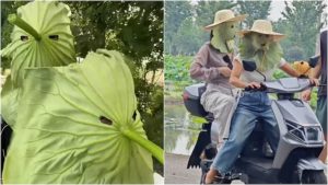 व्हायरल व्हिडिओत लोक स्वत:च्या चेहऱ्याला विशाल पानांनी झाकत असल्याचे दिसून येते. या पानाचा आकार चेहऱ्यापेक्षा कमीतकमी दुप्पट आहे. या पानांना चेहऱ्यावर बांधण्यासाठी टोपी किंवा हेल्मेटचा वापर केला जात आहे. तर पानांमधून पाहण्यासाठी अन् श्वसनासाठी डोळे अन् नाकाच्या ठिकाणी छिद्रं पाडली जात आहेत.