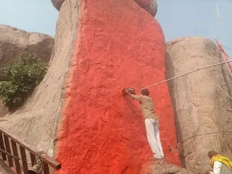 हे मंदीर म्हणजे एक विशाल खडक आहे. या खडकावर भगवान हनुमानच्या मूर्तीची प्राणप्रतिष्ठा कित्येक शतकांपूर्वी करण्यात आली आहे. काही वर्षांपूर्वीपर्यंत या खडकावरील मारुतीचे स्पष्ट दर्शन होत होते. तथापि, काही दशकांपूर्वी या भागात आग लागली आणि त्या आगीत या मूर्तीचे मूळचे स्वरुप नाहीसे झाले. तरीही येथे मोठ्या श्रद्धेने मारुती भक्त येतात. हा भगवान हनुमान स्वयंभू आहे अशी भाविकांची श्रद्धा आहे. ही भगवान हनुमानाची ‘आदिशक्ती’ स्वरुपातील मूर्ती आहे असे मानले जाते. या मूर्तीच्या दर्शनासाठी प्रतिदिन हजारो भक्तांची रांग लागलेले असते. या मंदिराचे कोणतेही व्यवस्थापन नसतानाही अत्यंत शिस्तीत भाविकच या मंदिरांच रखरखाव करतात, अशी माहिती गावकरी देतात.