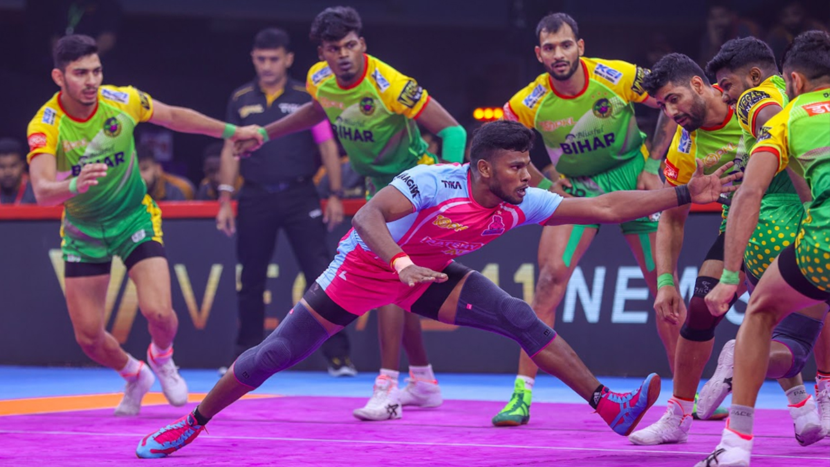 2023 च्या प्रो-कबड्डी लिग हंगामातील रविवारी येथे खेळविण्यात आलेल्या. चुरशीच्या सामन्यात अजितकुमारच्या दर्जेदार खेळाच्या जोरावर जयपूर पिंक पँथर्सने पाटणा पायरेट्सचा 29-28 अशा केवळ एका गुणाच्या फरकाने पराभव केला. या सामन्यात जयपूर पिंक पँथर्सच्या व्ही. अजितकुमारने दर्जेदार खेळ करत 14 गुण नोंदविले.