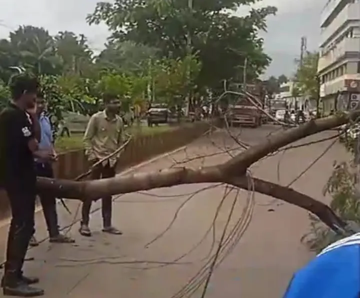 बेळगाव : परतीच्या जोरदार पावसाने झाडांची पडझड होऊ लागली आहे. गुरुवारी परतीच्या वादळी पावसाने काँग्रेस रोडवरील सेकंड गेटजवळ झाड कोसळले. त्यामुळे काहीकाळ वाहतुकीला अडथळा निर्माण झाला. वनखात्याच्या कर्मचाऱ्यांनी दाखल होऊन झाड हटवून मार्ग मोकळा केला. मागील काही दिवसांपासून परतीचा जोरदार पाऊस कोसळत आहे. त्यामुळे झाडांची आणि घरांची पुन्हा पडझड होऊ लागली आहे. जोरदार पावसाने मुख्य काँग्रेस रोडवरच झाड कोसळल्याने वाहतुकीला अडचणी निर्माण झाल्या होत्या. मात्र वनखात्याच्या कर्मचाऱ्यांनी तातडीने दाखल होऊन झाडाचा अडथळा दूर केला.