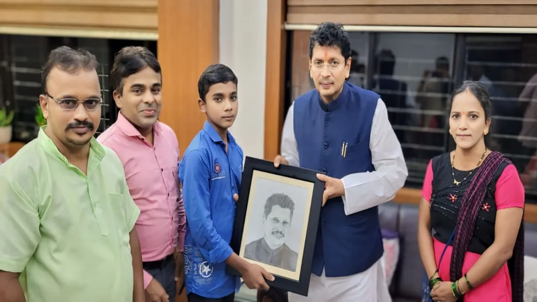 मिलाग्रीसच्या कु. विराज राऊळ कडून पेन्सिल पोर्ट्रेट स्केच गिफ्ट