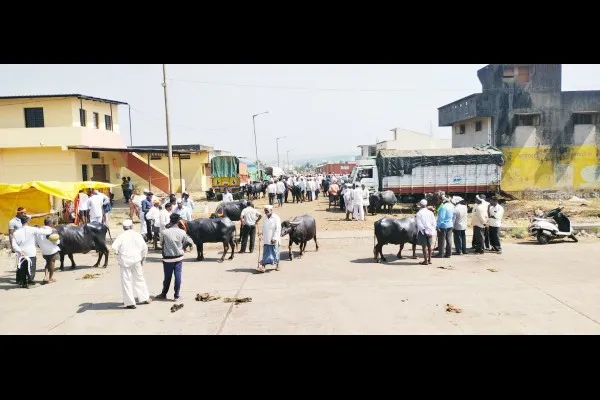 मागील पाच महिन्यापासून लंम्पीच्या रोगामुळे जनावरांचा बाजार बंद होता. यामुळे व्यापारी, दलाल यांची उपासमार झाली होती. कारण यांचा उदरनिर्वाह जनावरांच्या दलालीवरच अवलंबून असतो. मात्र मागील महिन्यापासून स्व:इच्छेने एपीएमसी भाजी मार्केटच्या प्रवेश द्वारासमोर म्हैस जानावरांचा किरकोळ बाजार भरवला जात असे. रितसर बाजार भरवण्यास जिल्हाधिकाऱ्यांना निवेदन देखील देण्यात आले होते. या विषयी प्रशासनाने दखल घेऊन केवळ म्हैस जनावरांच्या बाजारास परवानगी मागील आठवड्यापासून देण्यात आली आहे. यामुळे जनावरांचा आठवडी बाजार पूर्ववत झाला आहे. मात्र अद्याप गाय, बैलाच्या बाजारास रितसर परवानगी मिळाली नाही. त्यामुळे गाय व बैलांचा बाजार केंव्हा सुरु होणार असा प्रश्न उपस्थित होत आहे.