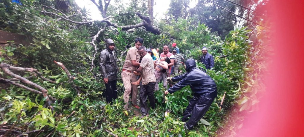 आचरा भंडारवाडी येथील सुनंदा संजय परब या सायंकाळी साडेपाच वाजण्याच्या सुमारास शेजाऱ्यांकडे जात असताना मारुती मंदिरनजीक असलेले आंब्याचे झाड तिच्यावर कोसळले. झाड पडल्याच्या दिशेने स्थानिक ग्रामस्थ डॉ. राजेश भोसले, जेरोण फर्नांडीस, मंदार सरजोशी, बाबल्या भिसळे, तसेच आचरा पोलीस ठाण्याचे सहाय्यक पोलिस निरीक्षक अनिल व्हटकर, अक्षय धेंडे यांनी धाव घेतली झाडं मोठे असल्याने आणि विजेच्या तरा यात महिला अडकली असल्याने तिला बाहेर काढण्यात अडचणी येत होत्या .झाडे कट करण्याचा कटर आणून फांद्या कट करत अथक प्रयत्नाने महिलेला बाहेर काढण्यात यश आले आले. जखमी महिलेला बाबू परुळेकर यांनी कार मध्ये घालून आरोग्य केंद्रात हलवले .परब यांच्यावर प्राथमिक उपचार करून अधिक उपचारासाठी कुडाळ येथे हलविण्यात आले. रणजित पांगे, मुजफ्फर मुजावर, जयप्रकाश परुळेकर, पोलीस पाटील जगन्नाथ जोशी, चिराग आचरेकर, विक्रांत आचरेकर, जितेंद्र जुवेकर यांनी झाड हटविण्यास मदतकार्य केले.