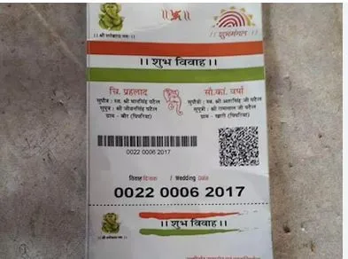 लग्नाच्या पारंपरिक पत्रिकेत सर्वात वरच्या भागात श्रीगजाननाचे चित्र, त्याखाली कुलदैवताचे नाव किंवा आराध्य दैवताचे नाव आणि नंतर इतर आशय असतो. तथापि, एक ‘एक्स’ यूजर डी. के. सरदाना यांनी त्यांना आलेल्या एका लग्नपत्रिकेचे छायाचित्र पोस्ट केले आहे. अशा प्रकारची लग्नपत्रिका पाहून प्रथम ते आश्चर्यचकित झाले. अन्य कोणाच्या तरी नावाचे आधार कार्ड आपल्या घरी चुकून येऊन पडले असावे. ही पोस्टाची चूक असावी, असा त्यांचा समज झाला. त्यामुळे आता पुढे काय करायचे, हे त्यांना समजेना. त्यामुळे ते गोंधळून गेले होते.