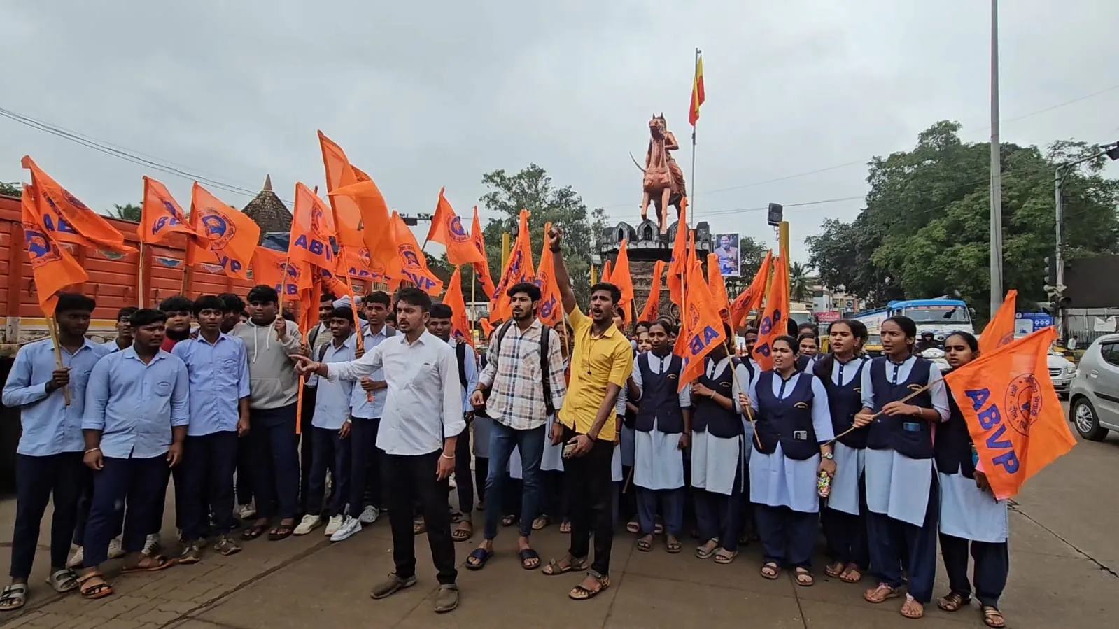 बेळगाव : ओडिशातील भुवनेश्वरमध्ये 19 वर्षीय अभियांत्रिकी विद्यार्थिनीवर एनएसयूआयच्या अध्यक्षाने अत्याचार केला. या घटनेच्या निषेधार्थ ठिकठिकाणी निदर्शने करण्यात आली. यानंतर यातील संबंधितांना अटक करण्यात आली असून, या घटनेतील आरोपींना फाशीची शिक्षा देण्याची मागणी एबीव्हीपीच्यावतीने करण्यात आली. या घटनेचा निषेध करत राणी चन्नम्मा सर्कलमध्ये निदर्शने करण्यात आली. यानंतर जिल्हाधिकाऱ्यांना निवेदन देण्यात आले. मार्चमध्ये सदर विद्यार्थिनीला बोलावून घेऊन एनएसयूआयच्या अध्यक्षाने तिच्या शितपेयामध्ये झोपेच्या गोळ्या मिसळल्या. यानंतर तिच्यावर अत्याचार करण्यात आला. याचे पडसाद सर्वत्र पसरताच या घटनेविरोधात निदर्शने करण्यात आली. यानंतर यामध्ये सामील असलेल्या संशयितांना अटक करण्यात आली. या घटनेची सखोल चौकशी करून संबंधितांना फाशीची शिक्षा सुनावण्यात यावी, अशी मागणी करण्यात आली. यावेळी प्रथमगौडा पाटील, निंगराज पुजारी, राकेश राठोड, कुमार लमाणी, सचिन हिरेमठसह विद्यार्थी सहभागी होते.
