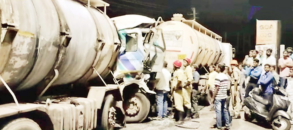 आल्त दाबोळीत पहाटे घडला अपघात, चालक जखमी, सुदैवाने अॅसिड गळती टळली