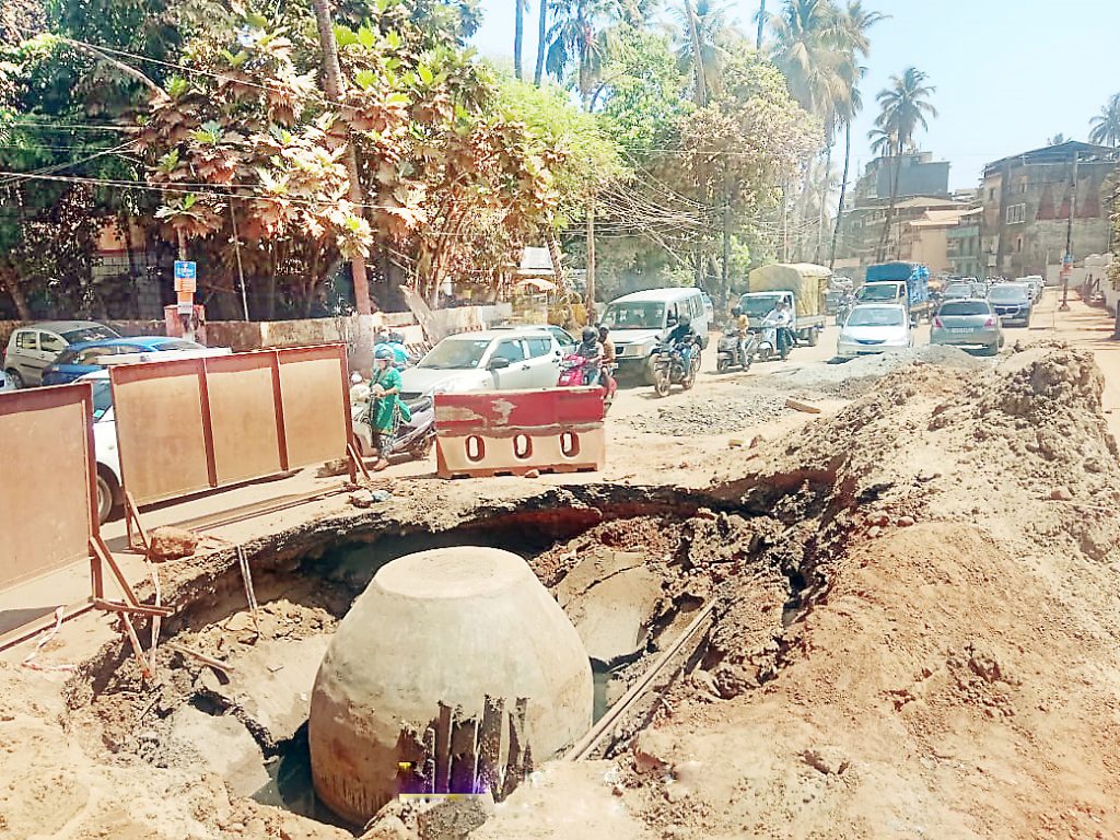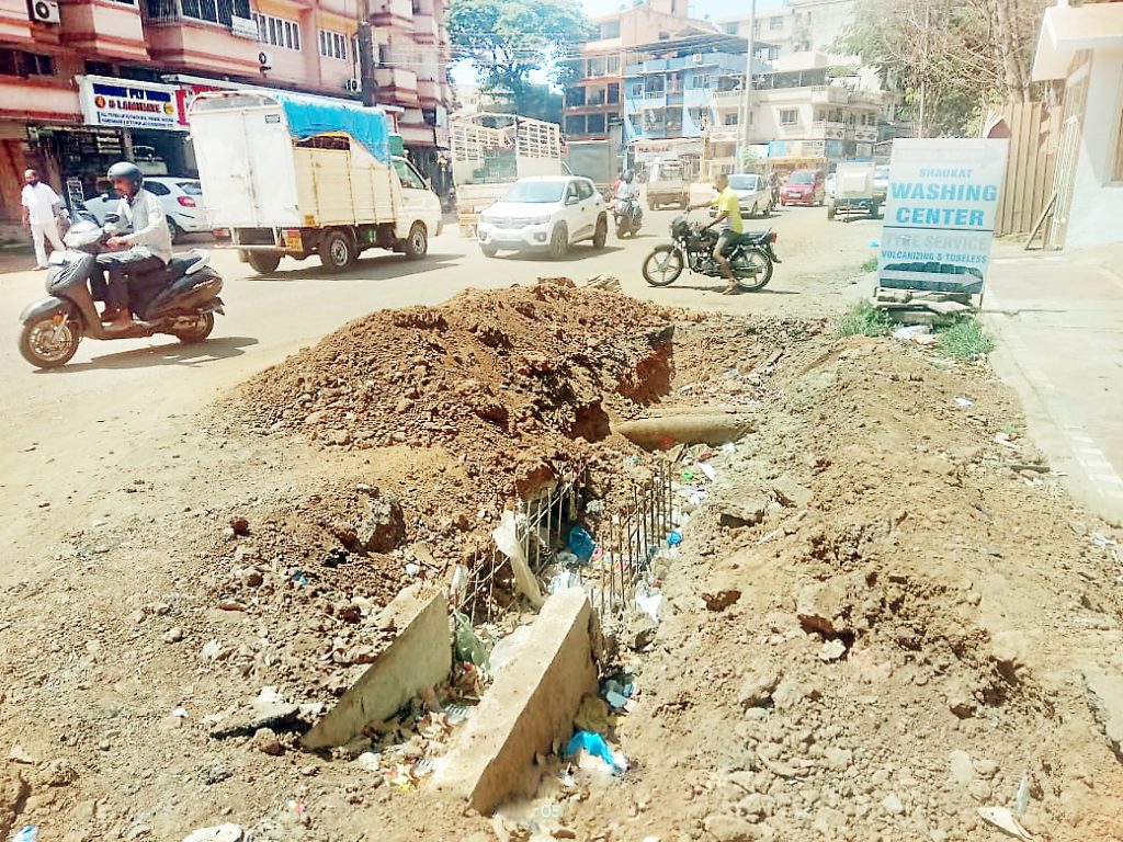 थोड्याच दिवसांवर मान्सून येऊन ठेपला आहे. अशातच राजधानीत सुरू असलेली बहुतांश कामे खोळंबलेली आहेत. मिळेल त्या ठिकाणी खोदकाम केलेली आहेत. ही कामे जाग्यावर येण्यासाठी आवश्यक गती नसल्याने अगदी संथस्वऊपात सुरू आहेत. थ्यामुळे यंदाच्या पावसाळ्यात पणजीवासीयांना जोखीम पत्करूनच घालवावा लागणार आहे. दरवर्षी पणजी शहरातील अनेक भागात पाणी साचते, अनेक घरात तुंबते, फुटपाथवरही गुडघाभर पाण्यातून नागरिकांना वाट काढावी लागते. आता अनेक प्रकारची कामे ही अर्धवट सुरू असल्याने यंदाच्या पावसाळ्यात पणजीवासीयांचा श्वास कोंडणार आहे. त्यामुळे प्रशासन आतातरी जागे होईल का? असा सवाल पणजीवासीयांतून विचारला जात आहे. सांतीनेज परिसर व इतर ठिकाणी नियोजन न करताच रस्त्यांचे खोदकाम करण्यात आले आहे. बहुतांश ठिकाणी या कामामुळे सांडपाण्याची वाहिनी फुटून पाणी उघड्यावर वाहत आहे. यामध्ये मळा-सांतीनेज परिसर पुढे आहे. सांडपाणी उगडयावर वाहत असल्याने नागरिकांच्या आरोग्याचा प्रश्न ऐरणीवर आला आहे. पाहीजणांना धुळीचा त्रास झाल्याने अनेक त्रासांना सामोरे जावे लागत आहे. धुळीमुळे व रस्ते बंद असल्याने व्यावसायिकांवरही मोठा परिणाम झालेला आहे.