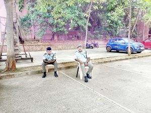सुरक्षारक्षक ड्युटी बजावतात उन पावसात