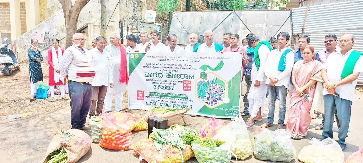 शेतकऱयांच्या मालाला किमान दर द्यावा, बेकायदेशीर भाजीमार्केटची परवानगी रद्द करावी, ते भाजी मार्केट बंद करावे, यासह इतर मागण्यांसाठी शेतकऱयांनी जिल्हाधिकारी कार्यालयासमोर आंदोलन केले. केंद्र आणि राज्य सरकारच्या विरोधात आठवडाभर विविध ठिकाणी शेतकरी आंदोलन करीत आहेत. सोमवारी जिल्हाधिकारी कार्यालयासमोर आंदोलन करत त्याच ठिकाणी भाजीविक्री केली. भाजी खरेदीसाठी ग्राहकांनी गर्दीही केली होती.