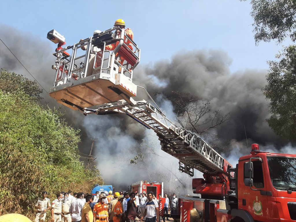 फोंडा-मडगाव मार्गावरील वाहतूक रखडली : जिवितहानी टळली, कोट्यावधी रूपयांच्या मालमत्तेची हानी,दुपारपासून उशिरा रात्रीपर्यत धुमसतात आगीचे लोळ