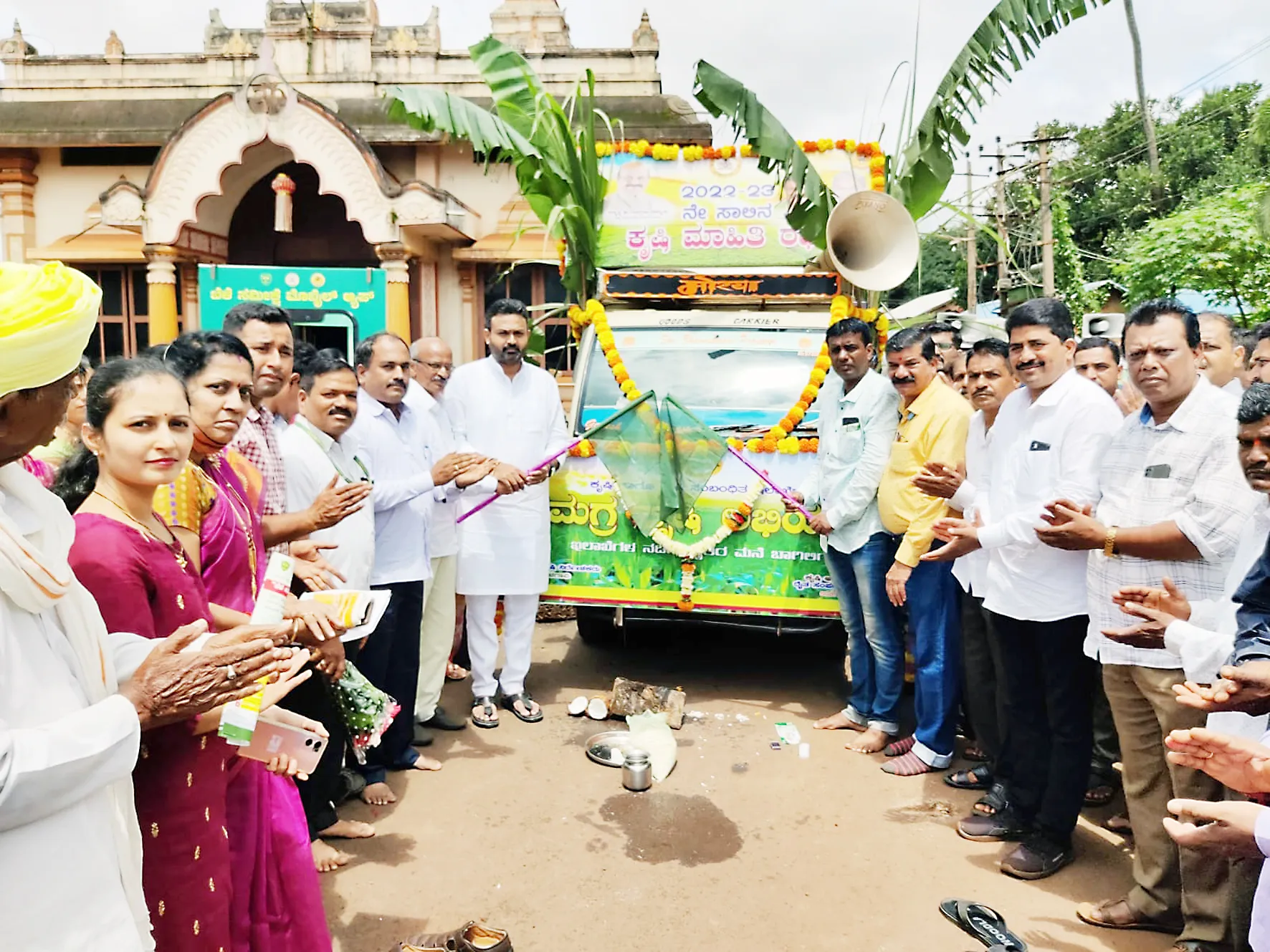 यावेळी साहाय्यक कृषी निर्देशक आर. बी. नायकर यांनी चन्नराज हट्टीहोळी यांचे व उपस्थितांचे गुलाबपुष्प देऊन स्वागत केले. बुडा अध्यक्ष युवराज कदम, ग्रा. पं. उपाध्यक्षा मथुरा तेरसे, ता. पं. माजी अध्यक्ष एल. एस. होनगेकर, ग्रा. पं. माजी सदस्य बी. एस. होनगेकर, ग्राम पंचायतचे सर्व सदस्य व उचगाव कृषी कार्यालयाच्या कार्यक्षेत्रातील 43 गावांतील शेतकरी उपस्थित होते.कृषी खात्यामार्फत मंजूर झालेल्या स्पिंकलरचे साहित्य सुळग्याचे सुरेश डोणकरी व उचगावचे दत्ता पावशे यांना तसेच पॉवर टीलर मंजूर झालेले आंबेवाडी गावचे शेतकरी भोमाणी कांबळे यांना साहित्याचे वितरण पाहुण्यांच्या हस्ते करण्यात आले. सदर कृषी माहिती रथयात्रा उचगाव कृषी कार्यालय कार्यक्षेत्रातील 43 गावांमधून नेण्यात येणार असून माहिती अभियानांतर्गत देण्यात येणार आहे. याचा लाभ घ्यावा, असे उचगावचे कृषी अधिकारी सी. एस. नायक यांनी कळविले आहे.