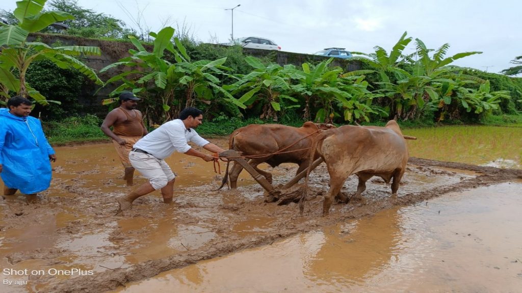 कृषी विभागाच्यावतीने प्रमोद यशवंत देसाई यांच्या शेतात सिंधुरत्न समृद्धी योजनेअंतर्गत श्री पद्धतीने भात लागवडीच्या प्रात्यक्षिकाचे आयोजन करण्यात आले होते. यावेळी सावंतवाडी तालुका कृषि अधिकारी जी. एस. गोरे यांनी चक्क शेतातील चिखलात उतरून स्वतः बैलजोडी चालवित जमिनीची मशागत केली. तसेच बांदा मंडळातील आपल्या सहका-यांसमवेत अधिक उत्पादन देणा-या भात पिकाच्या ‘श्री’ पद्धतीचे प्रात्यक्षिक करून दाखविले. तसेच डेगवे येथील दादा भालचंद्र देसाई यांचे क्षेत्रात काजू फळबाग लागवडीचा शुभारंभ करण्यात आला.