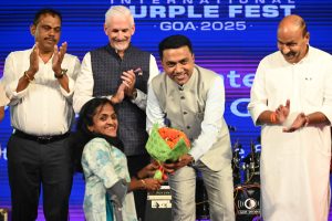 पणजी : विकसित भारतासाठी आंतरराष्ट्रीय पर्पल फेस्तचा वापर आणि उपयोग करण्याचे धोरण असून त्यातून दिव्यांगांचाही विकास साधण्याचे ध्येय ठेवण्यात आल्याचे मुख्यमंत्री डॉ. प्रमोद सावंत यांनी स्पष्ट केले. राजधानी पणजीतील ईएसजी संकुलात खास उभारण्यात आलेल्या मंडपात पर्पल फेस्तचे शानदार उद्घाटन झाले. या महोत्सवातून दिव्यांगांना संधी आणि प्रतिभा दाखवण्यासाठी व्यासपीठ मिळणार असून त्यातूनच दिव्यांगांना पुढे जाण्याची प्रेरणा लाभणार असल्याचे केंद्रीय सामाजिक न्यायमंत्री डॉ. वीरेंद्रकुमार यांनी सांगितले. उद्घाटनानंतर डॉ. सावंत पुढे म्हणाले की, पर्पल महोत्सव हा दिव्यांगांसाठी रोल मॉडेल आहे. दिव्यांगांना सर्व साधनसुविधा तसेच त्यांचे कल्याण व्हावे म्हणून मोदी सरकार प्रयत्नशील असून दिव्यांशू केंद्र प्रत्येक राज्यात सुरु करण्याची त्यांची सूचना आहे. त्यानुसार गोव्यातही दिव्यांशू केंद्र सुरु करण्यात आले आहे. त्यातून दिव्यांगांना आवश्यक ती सर्व उपकरणे देण्यात येणार आहेत. गोव्यात दिव्यांगांच्या सक्षमीकरणासाठी वेगळे खाते तयार करून ते कार्यरत करण्यात आले आहे. त्या शिवाय बहुतेक सर्व इमारतांमध्ये दिव्यांगांना प्रवेश सुकर व्हावा म्हणून विशेष मार्ग तयार करण्याचे प्रयत्न सुरू आहेत.