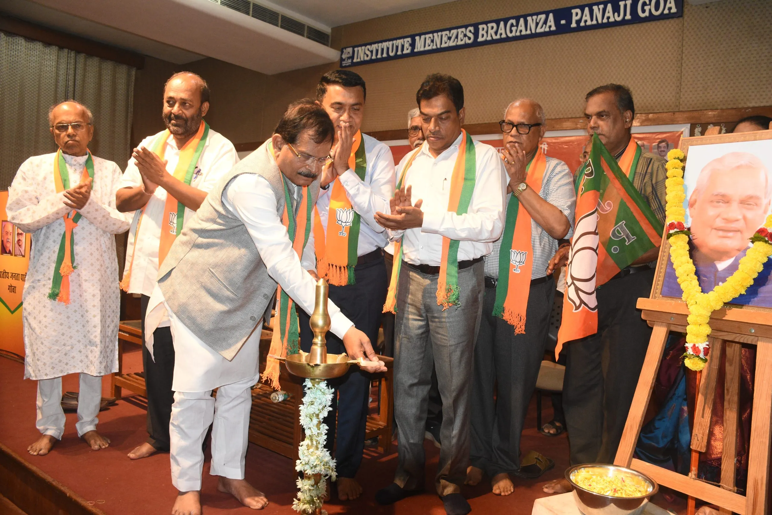 माजी मंत्री दयानंद मांद्रेकर, आमदार दिगंबर कामत, कुंदा चोडणकर, माजी पर्यटनमंत्री दिलीप पऊळेकर, भाजपचे नेते गोविंद पर्वतकर, भाजपचे खजिनदार संजीव देसाई आदी उपस्थित होते. उपस्थितांमध्ये माजी मुख्यमंत्री लक्ष्मीकांत पार्सेकर, मंत्री रोहन खंवटे, आमदार दिव्या राणे, आदी उपस्थित होते. दामोदर नाईक म्हणाले, निवडणूक जिंकणे हे ध्येय बाळगताना 40 मतदारसंघात संघटन मजबूत राखणे हे आव्हान कार्यकर्त्यांनी पेलायला हवे. यश, अपयश पचवून एका ध्येयाने अटल बिहारी वाजपेयी यांनी पक्षासाठी त्याग, समर्पण दिले. हा आदर्श आणि पक्षाची जडणघडण आपल्यासाठी खूप मोठी आहे. पक्षाला मिळालेले हे आनंददायी यश सहजासहजी मिळाले नाही. अनेक कार्यकर्त्यांनी आपले आयुष्य खर्ची घातलेले आहे. त्यामुळेच आता राज्यात 40 मतदारसंघात संघटन वाढीसाठी झटावे, असेही ते म्हणाले. दामू नाईक यांनी या कार्यक्रमात पक्षासाठी काम केलेल्या जुन्या, जाणत्या, तऊण कार्यकर्त्यांचा उल्लेख करून त्यांच्यामुळेच हा पक्ष उभा असल्याचे सांगितले.