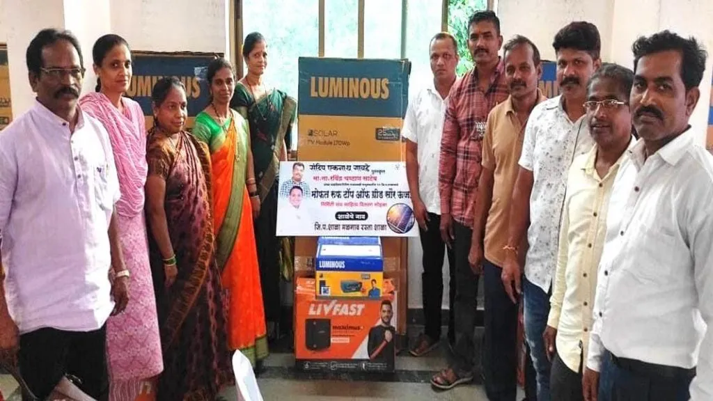मळगाव येथील शारदा विद्यालय मळगाव रस्ता या जिल्हा परिषद शाळेस भाजपच्यावतीने मान्यवरांच्या हस्ते सौर उर्जा साहित्य संच वाटप करण्यात आले. सार्वजनिक बांधकाममंत्री तथा सिंधुदुर्ग पालकमंत्री रवींद्र चव्हाण यांच्या वाढदिवसानिमित्त संदीप एकनाथ गावडे पुरस्कृत हे वाटप करण्यात आले. तालुक्यातील एकूण ११ जिल्हा परिषद शाळांमध्ये हा उपक्रम राबविण्यात आला.मळगाव माजी सरपंच गणेशप्रसाद पेडणेकर व भाजप जिल्हा सरचिटणीस चंद्रकांत जाधव यांच्या पाठपुराव्यातुन हा संच वाटप शारदा विद्यालय शाळेस करण्यात आला. या वाटपावेळी मळगाव माजी सरपंच गणेशप्रसाद पेडणेकर, भाजप जिल्हा सरचिटणीस चंद्रकांत जाधव,भाजप शक्ती केंद्रप्रमुख नीलकंठ बुगडे,बूथअध्यक्ष नरेश उर्फ रुपेश सावंत,बूथ अध्यक्ष सुखदेव राऊळ, शाळा व्यवस्थापन समिती अध्यक्ष सिद्धेश तेंडोलकर,माजी अध्यक्ष विवेक नार्वेकर,सदस्य गौरवी मेस्त्री,शिक्षिका सीमा सावंत,अमित गावकर,विनिता राऊळ,स्वरा वारंग, शिक्षणप्रेमी विजय ठाकूर आदी उपस्थित होते.