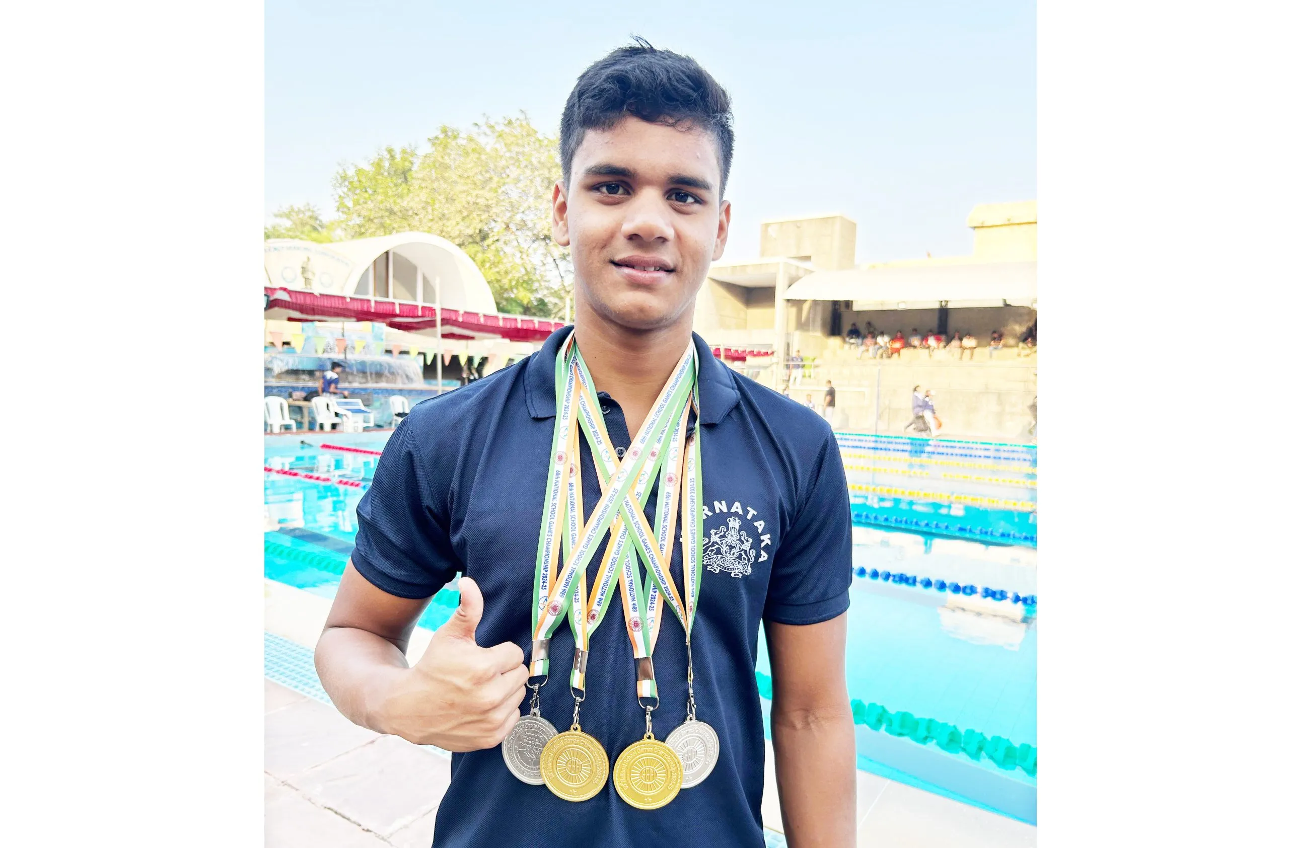बेळगाव : राजकोट येथे घेण्यात आलेल्या स्कूल गेम्स फेडरेशन ऑफ इंडियाच्या राष्ट्रीय शालेय जलतरण स्पर्धेत कर्नाटकाचे प्रतिनिधीत्व करणाऱ्या बेळगावच्या अमन सुणगारने 2 सुवर्ण व 2 रौप्य पदके पटकावित राज्याच्या शिरपेचात मानाचा तुरा रोवला. राजकोट येथे झालेल्या या स्पर्धेत कर्नाटक जलतरण संघाने सहभाग घेतला होता. त्यामध्ये विविध राज्यातून जवळपास 2 हजारांहून अधिक भाग घेतला होता. बेळगावच्या सेंट पॉल्स स्कूलचा विद्यार्थी अमन वसुंधरा अभिजित सुणगार याने 50 मी. बॅकस्ट्रोक व 200 मी. बॅकस्ट्रोकमध्ये दोन सुवर्ण पदके पटकाविली तर 100 मी. बॅकस्ट्रोक एक तर 4×100 मी. मिडले रिलेमध्ये एक अशी 2 रौप्य पदके पटकाविली. अमनने आपल्या खडतर परिश्रमामुळेच एसजीएफआयसारख्या स्पर्धेत सुवर्णपदक पटकावित यश संपादन केले आहे. तो केएलईच्या आंतरराष्ट्रीय जलतरण तलावात नियमित सराव करीत असून त्याला अक्षय शेरेगार, गोवर्धन काकतीकर, अजिंक्य मेंडके, नितीश कुडुचकर, इम्रान व उमेश यांचे बहुमोल मार्गदर्शन लाभत आहे. शाळेचे प्राचार्य, उपप्राचार्य व क्रीडा शिक्षक अॅन्थोनी डिसोजा व बाळेश बाळेकाई यांचे त्याला प्रोत्साहन मिळाले.