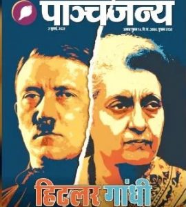 राष्ट्रीय स्वयंसेवक संघाचे मुखपत्र असलेल्या ‘पांचजन्य’ने आणीबाणीच्या 48 व्या वर्षपूर्तीनिमित्त देशाच्या माजी पंतप्रधान इंदिरा गांधी यांची तुलना जर्मनीचा हुकूमशहा हिटलरशी केली आहे. ‘पांचजन्य’च्या मुखपृष्ठावर हिटलर आणि इंदिरा गांधी यांचा फोटो समोरा-समोर लावण्यात आला असून त्याच्याखाली ‘हिटलर गांधी’ असे ठळक शीर्षक देण्यात आले आहे. या मासिकामध्ये ‘तानाशाह इंदिरा’सह अन्य काही लेखांतून आणीबाणीवर तपशीलवार प्रकाश टाकण्यात आला आहे. इंदिरा गांधींच्या सरकारने 25 जून 1975 रोजी देशात आणीबाणी लागू केली होती. ही आणीबाणी 21 महिने म्हणजे 21 मार्च 1977 पर्यंत चालली. इंदिरा गांधींनी घटनेच्या कलम 352 नुसार दिलेल्या अधिकारांचा वापर करून देशात आणीबाणी लागू केली होती.