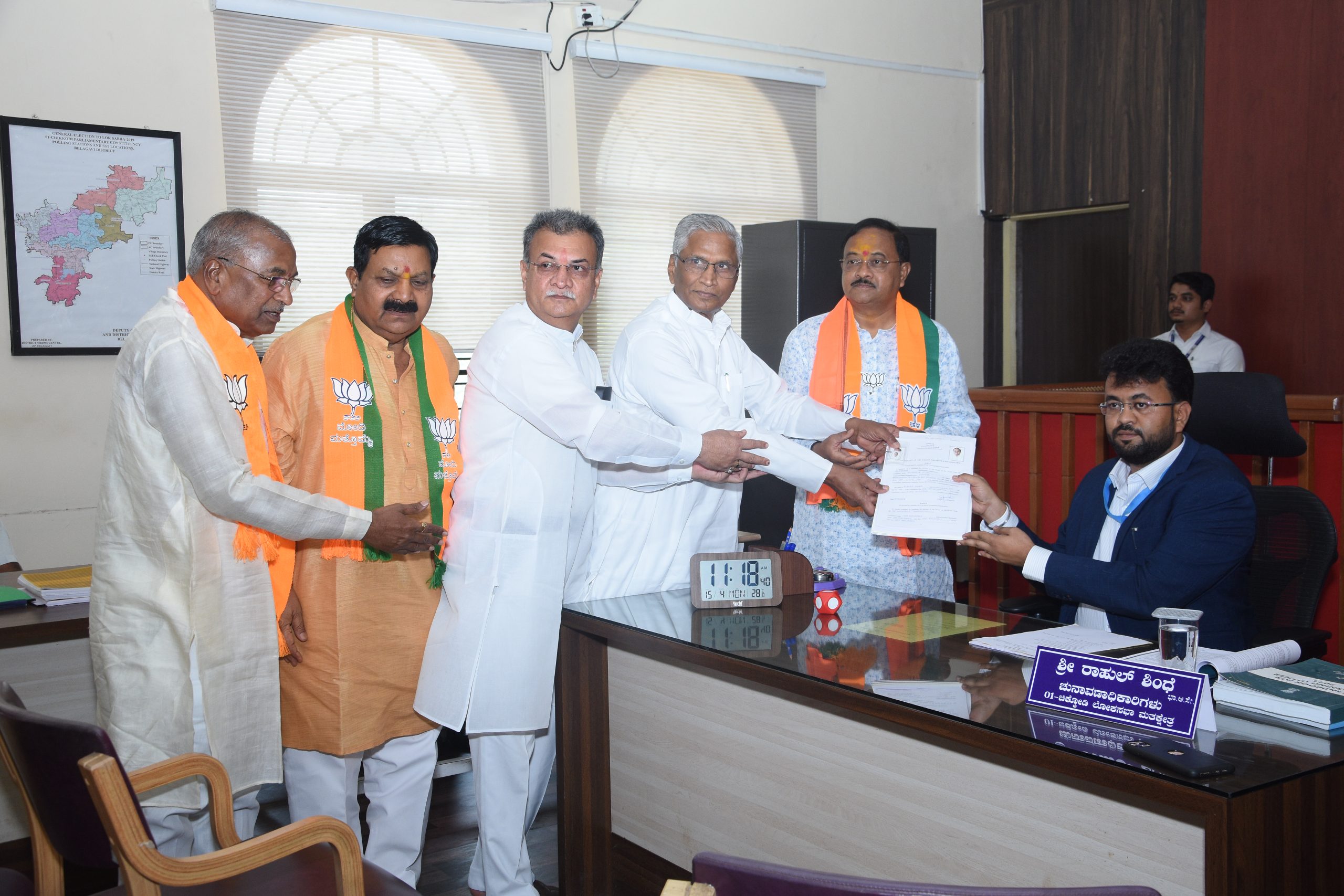 चिकोडी लोकसभा मतदारसंघामध्ये सोमवारी उमेदवारी अर्ज दाखल करण्याच्या चौथ्या दिवशी भाजपकडून आण्णासाहेब जोल्ले यांचे दोन, एकसंबा येथील आप्पासाहेब कुरणे व अथणी येथील विलास मण्णूर यांचा प्रत्येकी एक असे चार उमेदवारी अर्ज निवडणूक अधिकारी राहुल शिंदे यांच्याकडे दाखल करण्यात आले. चिकोडी लोकसभा मतदारसंघासाठी पहिल्याच दिवशी 12 एप्रिल रोजी एकसंबा येथील आप्पासाहेब कुरणे, चिकोडी येथील मोहन मोटण्णवर तर हारुगेरी येथील शंभू कल्लोळकर या तिघांनी उमेदवारी अर्ज दाखल केले होते. सोमवारी भाजपकडून आण्णासाहेब जोल्ले यांनी दोन उमेदवारी अर्ज दाखल केले. एकसंबा येथील आप्पासाहेब कुरणे व अथणी येथील विलास मण्णूर यांनी प्रत्येकी एक असे एकूण चार उमेदवारी अर्ज दाखल केले.