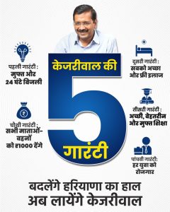दिल्लीचे मुख्यमंत्री आणि आम आदमी पक्षाचे राष्ट्रीय संयोजक अरविंद केजरीवाल यांच्या पत्नी सुनीता केजरीवाल यांनी हरियाणा विधानसभा निवडणुकीपूर्वी पाच हमी योजना जाहीर केल्या आहेत. आम आदमी पार्टीने हरियाणातील जनतेला मोफत आणि 24 तास वीज, मोफत उपचार, मोफत शिक्षण, सर्व माता-भगिनींना दरमहा 1000 ऊपये आणि प्रत्येक तऊणाला रोजगार देण्याचे आश्वासन दिले आहे. पंजाब आणि दिल्लीतील योजनांप्रमाणेच आम आदमी पक्षाकडून हरियाणातील जनतेसाठी वेगवेगळ्या आश्वासनांची खैरात विधानसभा निवडणुकीपूर्वी करण्यात आली आहे.
