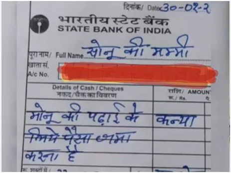 बँकेतून पेसे काढणे किंवा बँकेत पैसे जमा करण्यासाठी स्लिप भरुन द्यावी लागते, हे बहुतेकांना माहीत आहे. सध्या अशीच एक बँकस्लिप सोशल मिडियावर चर्चेत आहे. खरोखरच अशा प्रकारे स्लिप भरुन देण्यात आली आहे, की केवळ प्रसिद्धी मिळविण्यासाठी हा खटाटोप करण्यात आला आहे, हे स्पष्ट होत नाही. मात्र, खरोखरच अशा प्रकारे ती भरुन देण्यात आली असेल, तर त्या स्लिपवर पुढची प्रक्रिया करताना बँक कर्मचाऱ्याची तारांबळ उडाली असेल हे निश्चित.