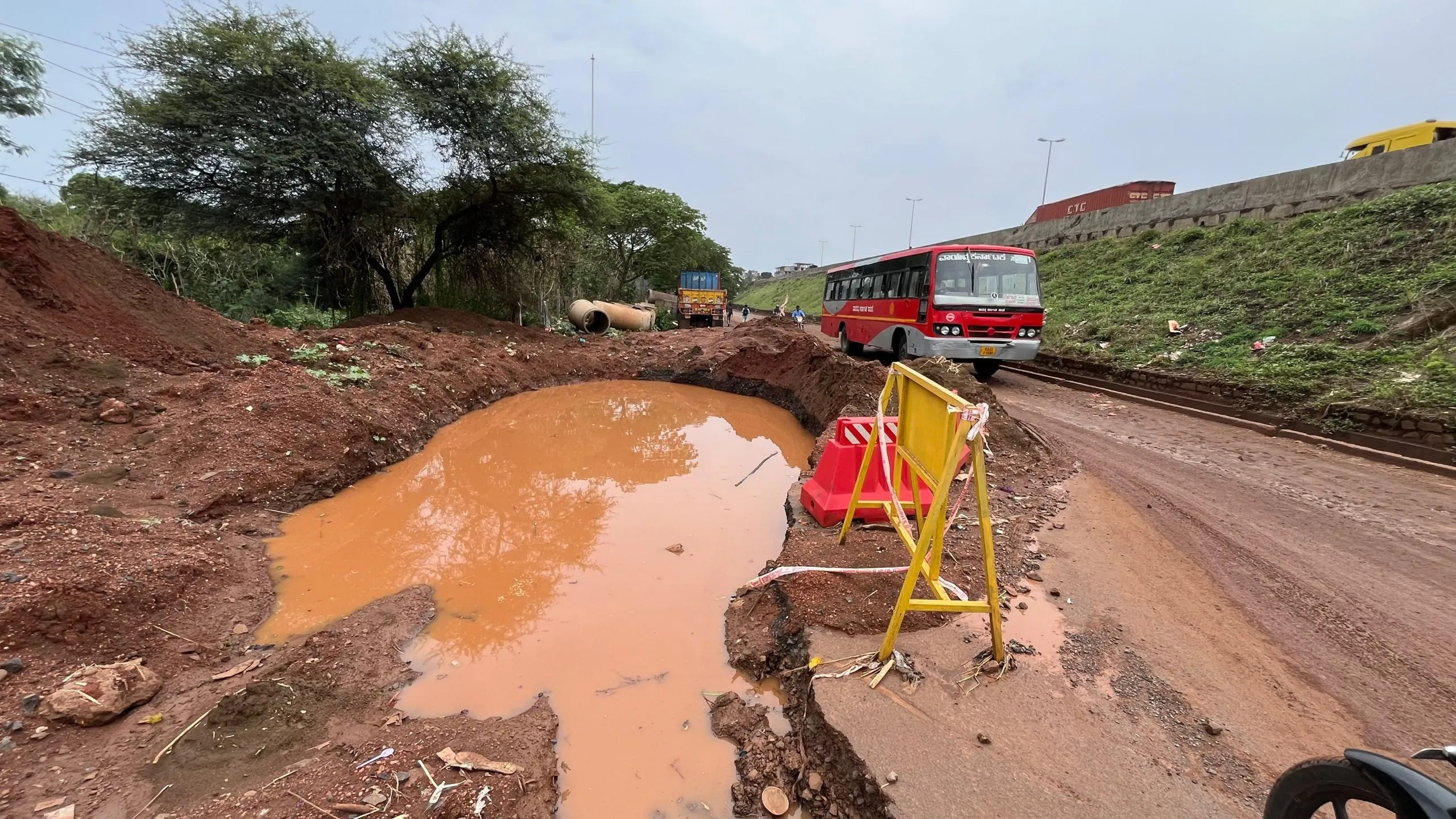 राष्ट्रीय महामार्गालगतच्या सर्व्हिस रोडवरच हा खड्डा खणण्यात आला आहे. वेगाने येणाऱ्या वाहनचालकाला रात्रीच्या वेळी खड्डा निदर्शनास न आल्यास मोठा अनर्थ घडू शकतो. या रस्त्यावरून शहरात येणारी वर्दळ मोठ्या प्रमाणात आहे. जवळच फ्रुट मार्केट व हेस्कॉमचे ग्रामीण उपविभागीय कार्यालय असल्याने नागरिकांची ये-जा सुरू असते. परंतु, मागील महिनाभरात हा खड्डा भरण्याकडे प्रशासनाचे दुर्लक्ष सुरू आहे.