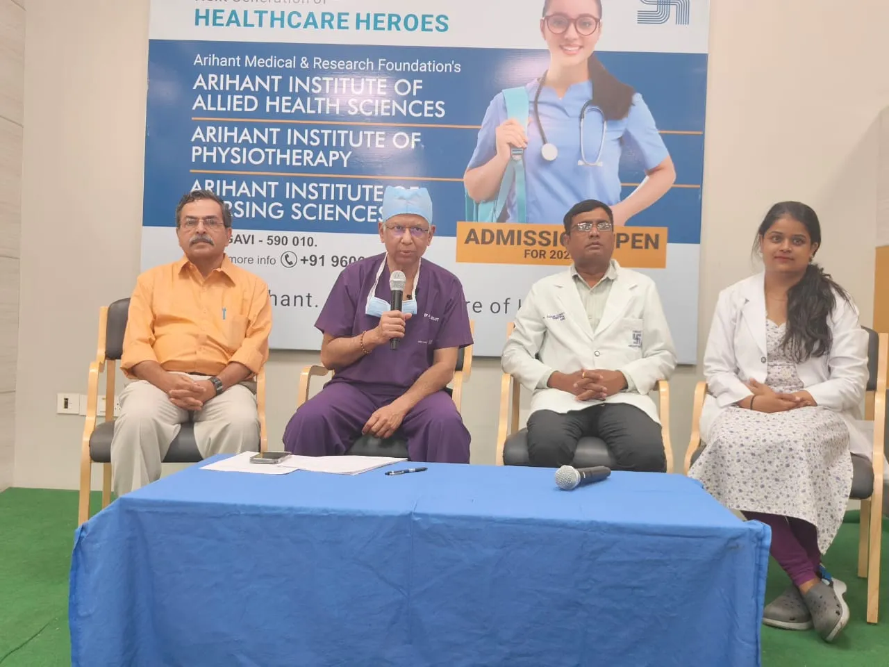 सदर अभ्यासक्रम पूर्ण झाल्यानंतर विद्यार्थ्यांनी एक वर्ष अरिहंतमध्येच इंटर्नशीप करणे बंधनकारक असणार आहे. नर्सिंग कॉलेजचे प्राचार्य म्हणून डॉ. अशोक कामत तर फिजिओथेरपीसाठी डॉ. आरजू नुराणी यांची नियुक्ती करण्यात आली आहे, असेही त्यांनी सांगितले. वैद्यकीय क्षेत्रात आज अनेक संधी असून भारतातील 7 टक्के लोक परदेशांमध्ये वैद्यकीय क्षेत्रात कार्यरत आहेत. मात्र, आपल्या देशातील विद्यार्थ्यांनी आपल्याच देशात सेवा द्यावी, या हेतूने अरिहंतने हे कॉलेज सुरू केल्याची माहिती त्यांनी दिली. अरिहंतची स्थापना होऊन 3 वर्षे पूर्ण होत आहेत. या कालावधीत अरिहंतने 45 हजार रुग्णांवर उपचार केले असून 3 हजार रुग्णांवर हृदय शस्त्रक्रिया केली आहे. 1500 जणांचे डायलेसिस झाले असून 1 हजार रुग्णांची इंडोस्कोपी झाली आहे, असेही डॉ. दीक्षित यांनी नमूद केले. हॉस्पिटलमध्ये कार्डियोलॉजी, कार्डियाक सर्जरी, लहान मुलांवरील शस्त्रक्रिया, गॅस्ट्रो, न्युरॉलॉजी, न्युरोसर्जरी, जनरल मेडिसीन, ऑर्थोपेडिक, नेफ्रॉलॉजी, जनरल सर्जरी विभाग कार्यरत असून 24 तास येथे वैद्यकीय सेवा उपलब्ध असल्याचे यावेळी सांगण्यात आले.