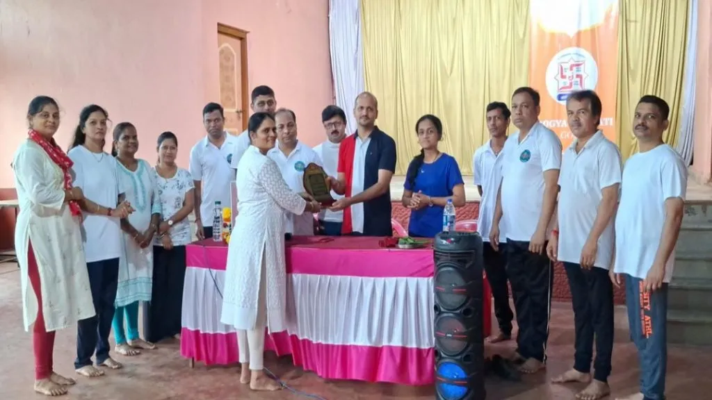 आरोग्य भारती गोवा यांच्याकडून तालुक्यातील डॉक्टर्ससाठी योग शिबिराचे आयोजन येथील महालक्ष्मी सभागृहात करण्यात आले होते. यावेळी आरोग्य भारती गोव्याचे डॉ. आदित्य बर्वे यांनी तालुक्यातील उपस्थित डॉक्टर्सकडून विविध योगासनांची प्रात्यक्षिके करून घेतली. हे शिबिर सकाळी ८ ते ११ वाजता या वेळेत संपन्न झाले. डॉ. बर्वे यांनी योगासनांची परिपूर्ण माहिती देत प्रत्यक्षिकेही करून दाखवली.या शिबिरात डॉ. उमेश देसाई, डॉ. महेश पवार, डॉ. अमोल देसाई, डॉ. समीर गवस, डॉ. नंदकिशोर दळवी, डॉ. रामदास रेडकर, डॉ. कृष्णा कविटकर, डॉ. योजना मोरजकर, डॉ. मनाली पवार, डॉ. संदेश नांदोडकर, डॉ. दर्शना घोगळे, डॉ. केतकी गवस, डॉ. प्रियांका बर्वे, डॉ. श्वेता देसाई, डॉ. गौरी देसाई, डॉ. वंदना गुजांते यांसह संजय सावंत, संजय नाटेकर यांनीही सहभाग घेतला होता.