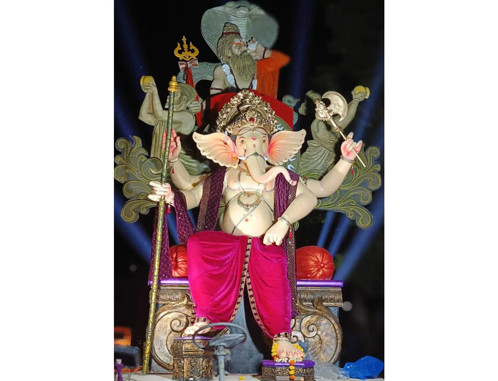 हत्तीवर छत्रपती शिवरायांची मूर्ती विराजमान झाली होती. मिरवणुकीत कुरबर ढोल पथक, अनगोळ येथील बाप्पा ढोलताशा पथक, सुळेभावी येथील वीर गर्जना ढोलताशा पथक, महाराष्ट्र लाकूबाबा हलगी पथक, परांडा शिराळ येथील हलगी पथक सहभागी झाले होते. राजहंस गल्ली, भांदुर गल्ली, विद्यानगर व मराठा चौक येथील गणेश मंडळांनी यंदा डॉल्बीमुक्त मिरवणूक काढून पारंपरिक वाद्यांना पसंती दिल्याने नागरिकांनी त्यांचे कौतुक केले. शिवनेरी युवक मंडळ रघुनाथ पेठ येथील श्री मूर्तीचा आगमन सोहळा बाबले गल्ली येथून सुरू झाला. सामाजिक कार्यकर्ते विजय पाटील यांच्या हस्ते श्री मूर्तीचे पूजन करण्यात आले. शिवरायांच्या मूर्तीचे पूजन ओंकार देसाई यांनी केले. मिरवणुकीत वज्रनाद ढोलताशा पथक सहभागी झाले होते.