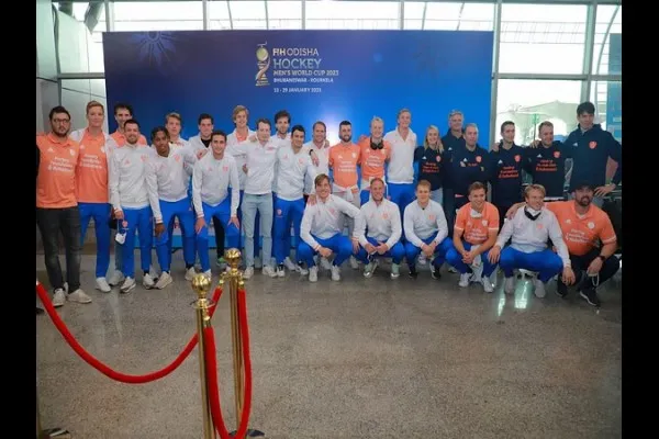 भुवनेश्वर-राऊरकेला येथे होणाऱया विश्वचषक हॉकी स्पर्धेसाठी तीनवेळा हॉकी विश्वचषक स्पर्धा जिंकणाऱया नेदरलँड्स पुरुष हॉकी संघाचे येथे बुधवारी आगमन झाल्यानंतर बिजू पटनायक आंतरराष्ट्रीय विमानतळावर त्यांचे जोरदार स्वागत करण्यात आले. 13 ते 29 जानेवारी या कालावधीत ही स्पर्धा होणार आहे.