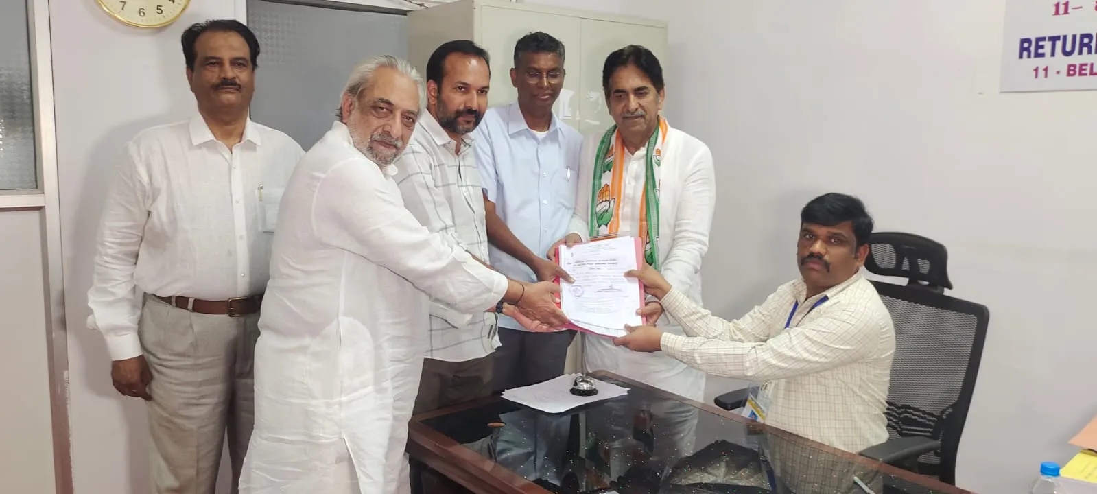 बेळगाव : असिफ उर्फ राजू सेठ यांनी आज बेळगाव उत्तर मतदारसंघातtन काँग्रेसकडून विधानसभा निवडणुकीसाठी उमेदवारी अर्ज दाखल केला. यावेळी माजी आमदार फिरोज सेठ, सतीश जारकीहोळी व एस. बी. शेख उपस्थित होते. सध्या उष्णतेची लाट असल्यामुळे कार्यकर्त्यांची गैरसोय होऊ नये यासाठी त्यांनी अगदी मोजक्या कार्यकर्त्यांसह अर्ज दाखल केला.