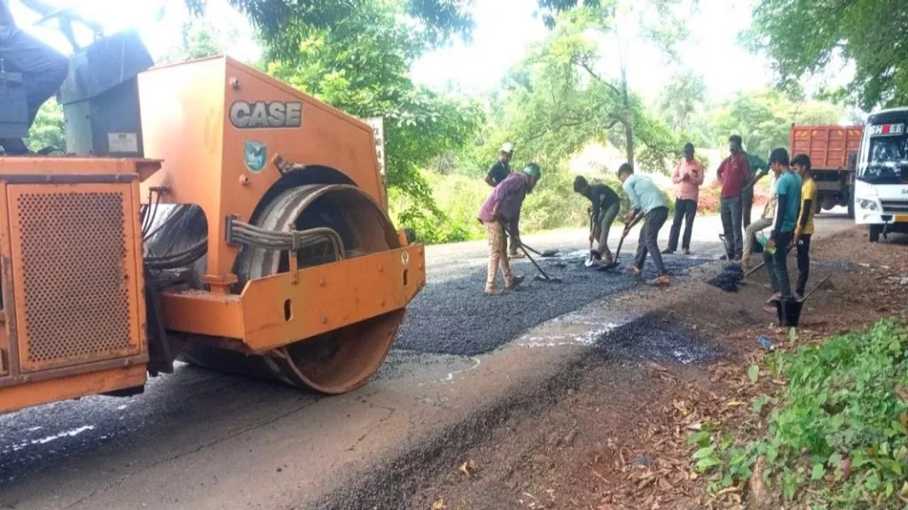 रस्त्यावरील खडी,डांबर उखडल्यामुळे रस्ता बनला होता धोकादायक