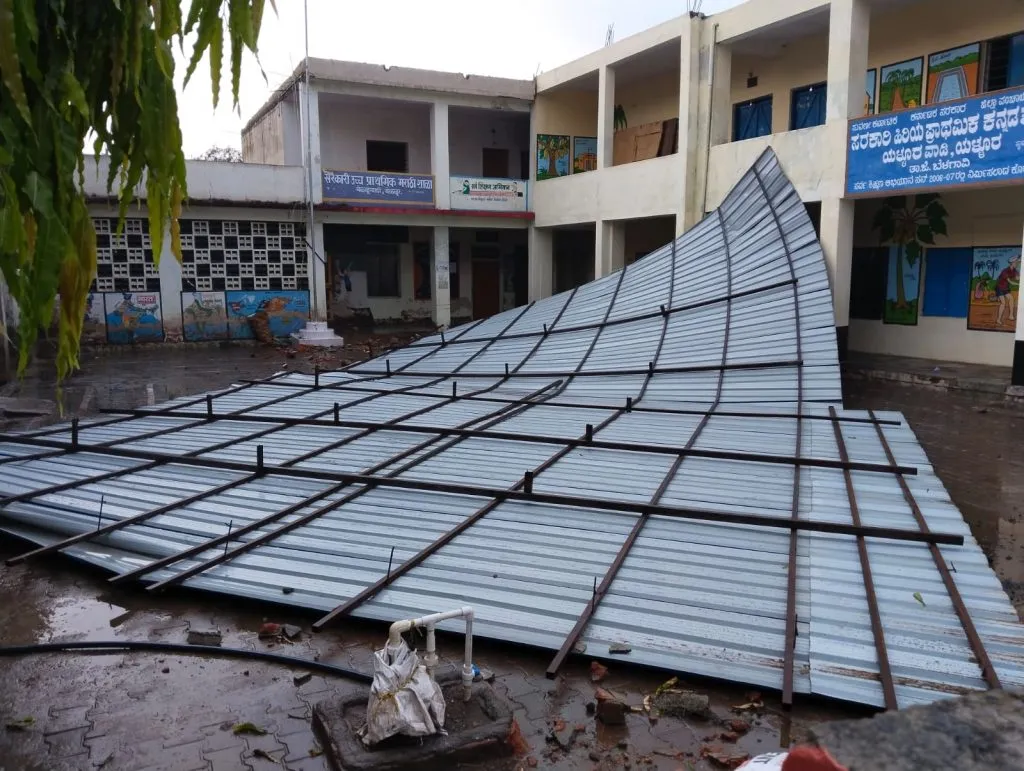 प्रतिनिधी /बेळगाव येळ्ळूर परिसरात जोरदार वाऱ्यासह पावसाचे आगमन झाले. या वाऱ्यामुळे येळ्ळूरवाडी मराठी शाळेचे छत उडून गेले. सुदैवाने यावेळी विद्यार्थी…