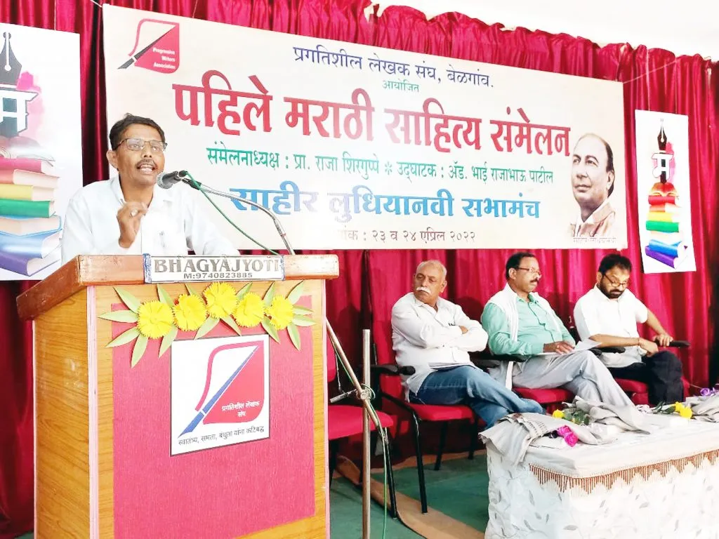 प्रगतिशील लेखक संघ बेळगाववतीने आयोजित पहिल्या मराठी साहित्य संमेलनाचे अध्यक्ष म्हणून ते बोलत होते. व्यासपीठावर ऍड. राजाभाऊ पाटील, डॉ. भालचंद्र कांगो, प्रा. आनंद मेणसे, ऍड. नागेश सातेरी, कृष्णा शहापूरकर आदी उपस्थित होते.