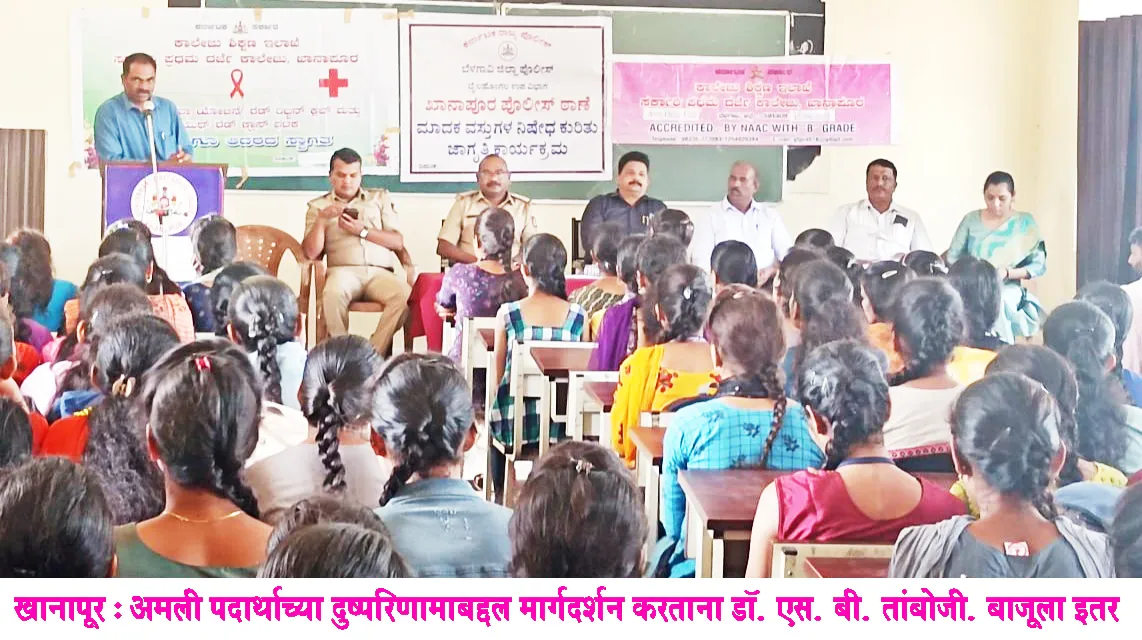 अमलीपदार्थ सेवनाच्या दुष्परिणामांबाबत शासनाच्यावतीने जागृती करण्यासाठी कार्यक्रम राबविण्याची योजना आहे. याचाच एक भाग म्हणून खानापूर पोलीस स्थानकाच्यावतीने बुधवारी शासकीय महाविद्यालयात कार्यक्रमाचे आयोजन करण्यात आले होते. निरीक्षक जालीहाळ यांनी प्रास्ताविक करून अमलीपदार्थ सेवनाच्या दुष्परिणामांची सविस्तर माहिती दिली.