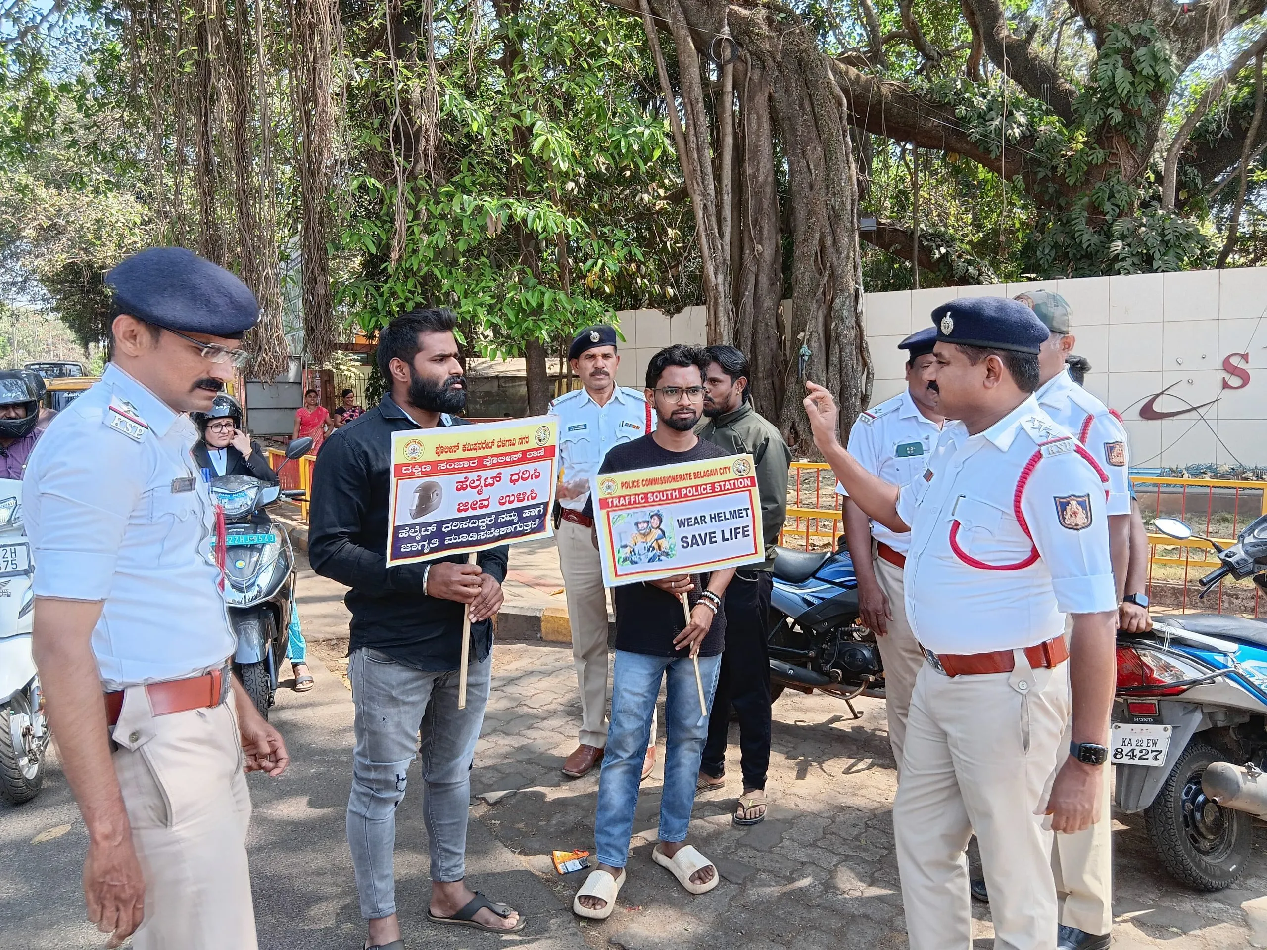 वाहतूक विभागाचे एसीपी जोतिबा निकम यांच्या मार्गदर्शनाखाली वाहतूक दक्षिण विभागाचे पोलीस निरीक्षक विनायक बडीगेर, उत्तर विभागाचे पोलीस निरीक्षक श्रीकांत तोटगी आदी अधिकाऱ्यांनी बुधवारी कित्तूर चन्नम्मा सर्कल, गोगटे सर्कल व शहापूर येथील बँक ऑफ इंडिया सर्कल परिसरात जागृतीची मोहीम राबविली. जे मोटारसायकलस्वार हेल्मेटशिवाय मोटारसायकल चालवतात, त्यांना अडवून त्यांच्या हातात जागृतीचे फलक देण्यात येत आहेत. ‘हेल्मेट परिधान करा, जीव वाचवा’ असे ते फलक आहेत. सकाळी हेल्मेटसंबंधी जागृती व संध्याकाळी बाजारपेठेतील अतिक्रमणे हटविण्याचे काम वाहतूक पोलिसांनी हाती घेतले आहे. गेल्या पंधरवड्यात वाहतूक पोलिसांच्या मोहिमेने जोर घेतला असून जागृती व मोहिमेत सातत्य ठेवल्यामुळे या अधिकाऱ्यांचे कौतुक केले जात आहे.