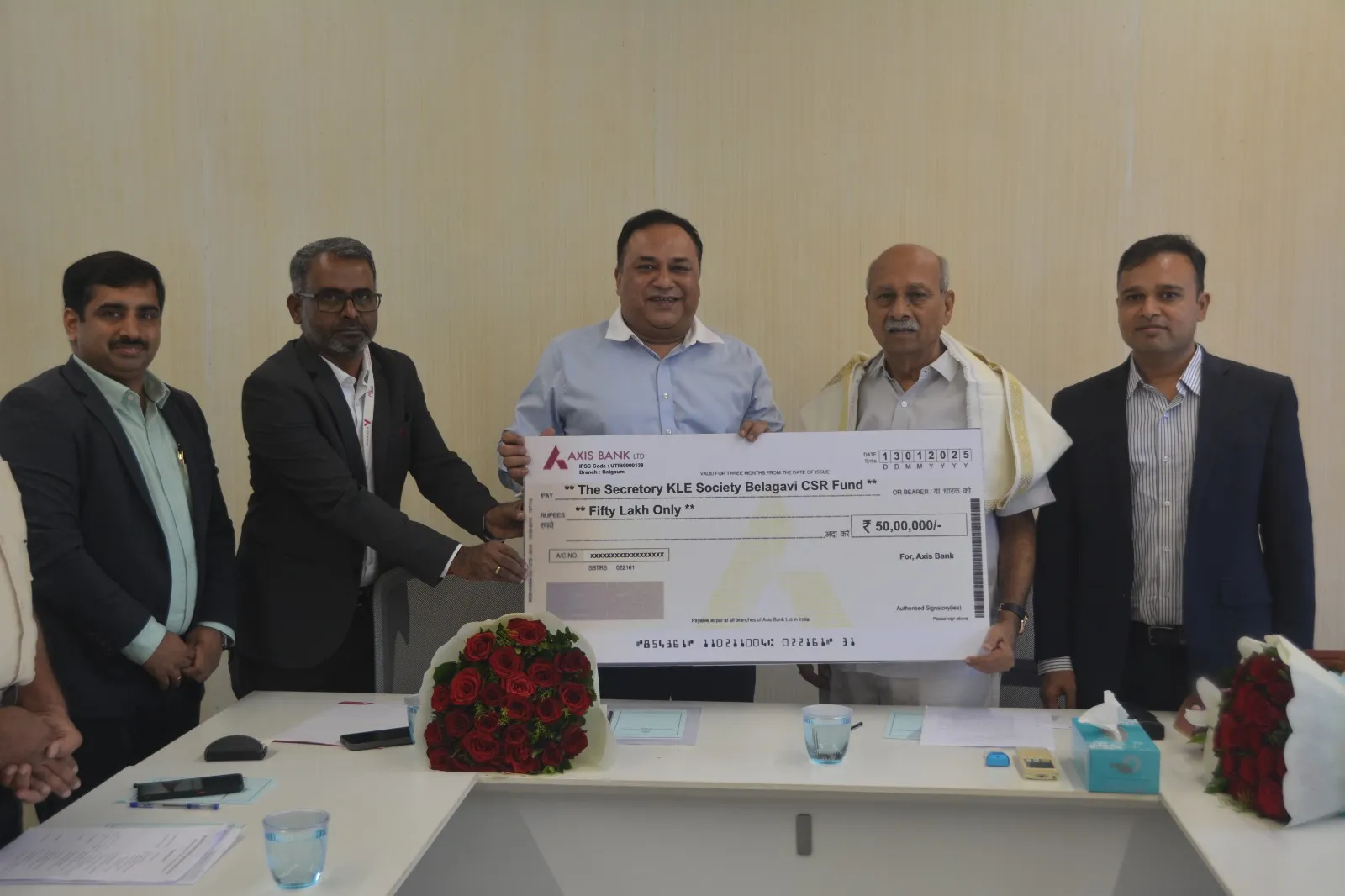 अॅक्सिस बँकेचे अध्यक्ष प्रशांत श्रीनिवास म्हणाले, ग्रामीण भागातील शाळांना वर्गखोल्या बांधण्यासाठी अनुदानाची कमतरता भासते. पण शहरातील शाळांना मूलभूत सुविधा उपलब्ध करून देण्यासाठी अधिक खर्च करण्यात येतो. शहरी भागातील शाळांना मिळणाऱ्या सुविधा ग्रामीण भागातील शाळांनाही मिळाल्यास ग्रामीण विद्यार्थ्यांना शैक्षणिक प्रगती साधणे शक्य होईल. अॅक्सिस बँकेचे वरिष्ठ उपाध्यक्ष अवधूत दीक्षित, केएलई संस्थेचे सचिव डॉ. बी. जी. देसाई, केएलई संस्थेचे आर्थिक सल्लागार बसवराज जेवरगीकर उपस्थित होते. केएलईचे आजीव सदस्य महादेव बळीगार यांनी आभार मानले.