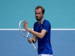 विद्यमान चॅम्पियन रशियाचा डॅनिल मेदवेदेव्हने कारकिर्दीतील 350 वा विजय मिळवित येथे सुरू असलेल्या मियामी ओपन टेनिस स्पर्धेच्या उपांत्यपूर्व फेरीत स्थान मिळविले. अग्रमानांकित कार्लोस अल्कारेझनेही शेवटच्या आठमध्ये स्थान मिळविताना मुसेटीचा पराभव केला. महिलांमध्ये व्हिक्टोरिया अझारेन्का व इलेना रायबाकिना यांनी शेवटच्या चारमध्ये स्थान मिळविले आहे.