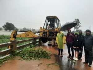 बळ्ळारी नाल्यात पाण्याचा निचरा थांबल्याने अडचणी वाढल्या आहेत. मंगळवारी जेसीबीच्या साहाय्याने वडगाव-यरमाळ मार्गावरील नाल्याजवळ स्वच्छता करण्यात आली. पुलाच्या तोंडावर अडकलेला कचरा जेसीबीच्या साहाय्याने हटविण्यात आला. मात्र, शेती परिसरात अधिक प्रमाणात पाण्याचा प्रवाह वाढला आहे. त्यामुळे पुराचा धोका कायम आहे.