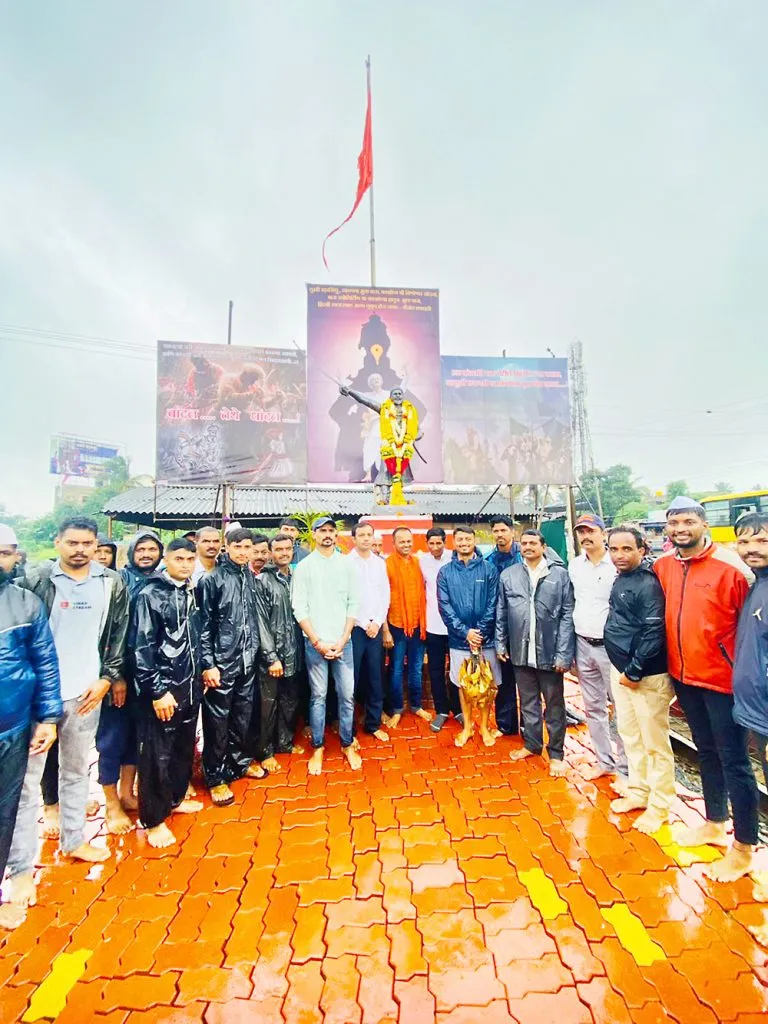 बुधवारी सकाळी पिरनवाडी परिसरात मुसळधार पाऊस सुरू होता. तरीही पावसाची तमा न बाळगता या परिसरातील शिवप्रेमी छत्री व रेनकोट घेऊन कार्यक्रमाला उपस्थित होते. यावरून छत्रपती शिवाजी महाराज व त्यांचे मावळे यांच्याप्रती त्यांची आस्था दिसून आली. छत्रपती शिवाजी महाराजांनी अठरापगड जातींच्या मावळय़ांना एकत्र घेऊन हिंदवी स्वराज्याची स्थापना केली. आता गरज आहे ती छत्रपती शिवरायांचे आचारविचार आचरण्यात आणण्याची आणि त्यांच्या मावळय़ांकडून प्रेरणा घेण्याची, असे संतोष जैनोजी यांनी सांगितले.