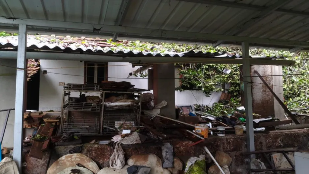 मुसळधार पावसामुळे परुळे सुतारवाडी येथील कृष्णा भीवा मेस्त्री यांच्या घरावर जीर्ण झालेले वडाचे झाड उन्मळून पडल्यामुळे त्यांच्या घराचे मोठे नुकसान झाले आहे. दिवसभर मुसळधार पडणार्या पावसाने परिसरात हजेरी लावल्यामुळे मेस्त्री यांच्या घराच्या बाजूला असलेले झाड मध्यरात्रीच्या सुमारास उन्मळून पडले. त्यामुळे घराचे मोठया प्रमाणात नुकसान झाले आहे. सुदैवाने कोणतीही जीवितहानी झाली नसून मेस्त्री कुटुंबावर चार दिवसात झालेला हा दुसरा आघात आहे. नुकतेच त्यांचा भाऊ संतोष भिवा मेस्त्री यांचे अल्प आजाराने निधन झाले. त्यातून सावरत असताना ही नैसर्गिक आपत्ती आली. त्याबाबत हळहळ व्यक्त होत आहे. ही घटना घडली त्याच दिवशी मेस्त्री यांच्या घरी आलेले पाहुणे संध्याकाळी मुंबईला गेल्याने ते देखील बचावले. घराच्या माडीवर मुंबईहून आलेले पाहुणे मंडळी झोपत होती . ते जर त्याठिकाणी असते तर अनर्थ घडला असता . घटनेची माहिती मिळताच सरपंच प्रणिती आंबडपालकर ,माजी सभापती निलेश सामंत , उपसरपंच संजय दूधवडकर, सदस्य प्रदीप प्रभू ,प्राजक्ता पाटकर ,सीमा सावंत यांनी भेट देत पाहणी केली. ग्राम महसूल अधिकारी श्री आर आर गवते ,कोतवाल स्वप्निल वरक यांनी भेट देत नुकसानीचा पंचनामा केला. माजी सभापती निलेश सामंत यांनी मेस्त्री यांना रुपये दहा हजाराची तात्काळ मदत केली.