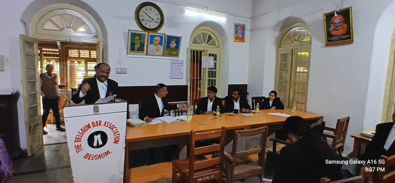 बेळगाव : बेळगाव बार असोसिएशनची सर्वसाधारण सभा सोमवार दि. 28 रोजी दुपारी जुने बार असोसिएशन हॉल (टीव्ही हॉल) जिल्हा न्यायालय कॉम्प्लेक्समध्ये पार पडली. यावेळी विविध विषयांवर चर्चा करण्यात आली. बैठकीच्या अध्यक्षस्थानी बार असोसिएशनचे अध्यक्ष ॲड. एस. एस. किवडसण्णावर होते. 2024-25 या आर्थिक वर्षासाठी बेळगाव बार असोसिएशनच्या लेखा आणि लेखा परीक्षण विवरण पत्रावर चर्चा करून त्याला मंजुरी देण्यात आली. बैठकीत सर्वोच्च न्यायालयाने विशेष अपिल क्रमांक (सी) 1404/2025 मध्ये दिलेल्या आदेशानुसार सुधारित उपकायद्याच्या मसुद्यावर त्याचबरोबर इतर विषयांवरही सविस्तर चर्चा करण्यात आली. यावेळी उपाध्यक्ष ॲड. बसवराज मुगळी, ॲड. शीतल रामशेट्टी, जनरल सेक्रेटरी ॲड. यल्लाप्पा दिवटे, सहसचिव ॲड. विश्वनाथ सुलतानपुरी यांच्यासह पदाधिकारी व वकील उपस्थित होते.