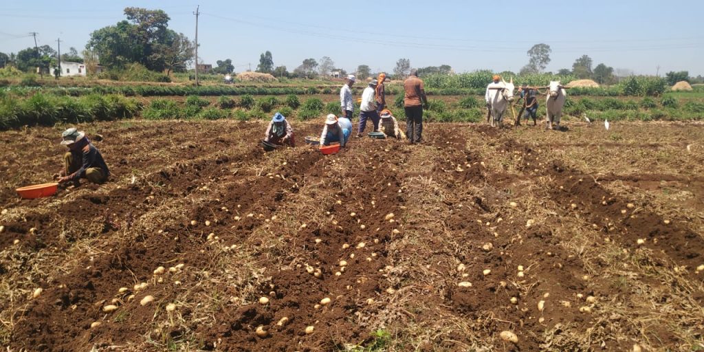 उन्हाळी हंगामातील बटाटे काढणी जोरात सुरू झाली असून बटाटा आणि कोबीज कवडीमोल दराने विकला जात असल्याने कडोली परिसरातील उत्पादक शेतकऱ्यांत नाराजी दिसून येत आहे. कडोली परिसरातील शेतकऱ्यांनी यावर्षी उन्हाळी हंगामात विशेष करून बटाटा आणि कोबीज पिकाची मोठ्या प्रमाणात लागवड केलेली आहे. बटाटे आणि कोबीज पिकाच्या लागवडीसाठी एकरी 25 ते 30 हजार रुपये खर्च करण्यात आले आहेत. गेले आठ दिवस झाले कडोली, जाफरवाडी, केदनूर, गुंजेनहट्टी, देवगिरी भागात उन्हाळी बटाटे काढणी जोरात सुरू झाली आहे. परंतु बटाट्याला कवडीमोल दर मिळत असल्याने शेतकरीवर्गात नाराजी दिसून येत आहे. बाहेरील राज्यातून बटाट्याची मोठ्या प्रमाणात आवक होत असल्याने बेळगाव परिसरातील बटाट्याचा भाव एकदम घसरला आहे. तसेच कडोली परिसरातील दुसऱ्या प्रमुख कोबीज पिकाची अवस्था हीच झाली आहे. गेल्या दोन-तीन महिन्यापासून कोबीज दरात घसरण झालेली पहावयास मिळत आहे. हे पीक तर पूर्ण नुकसानीचे ठरल्याने कोबीज उत्पादकांत घोर निराशा झालेली दिसत आहे. एकंदरीत कडोली परिसरातील उन्हाळी हंगामात घेण्यात येत असलेली प्रमुख दोन पिके बटाटा आणि कोबीज नुकसानीची ठरल्याने शेतकरी हतबल झाला आहे.