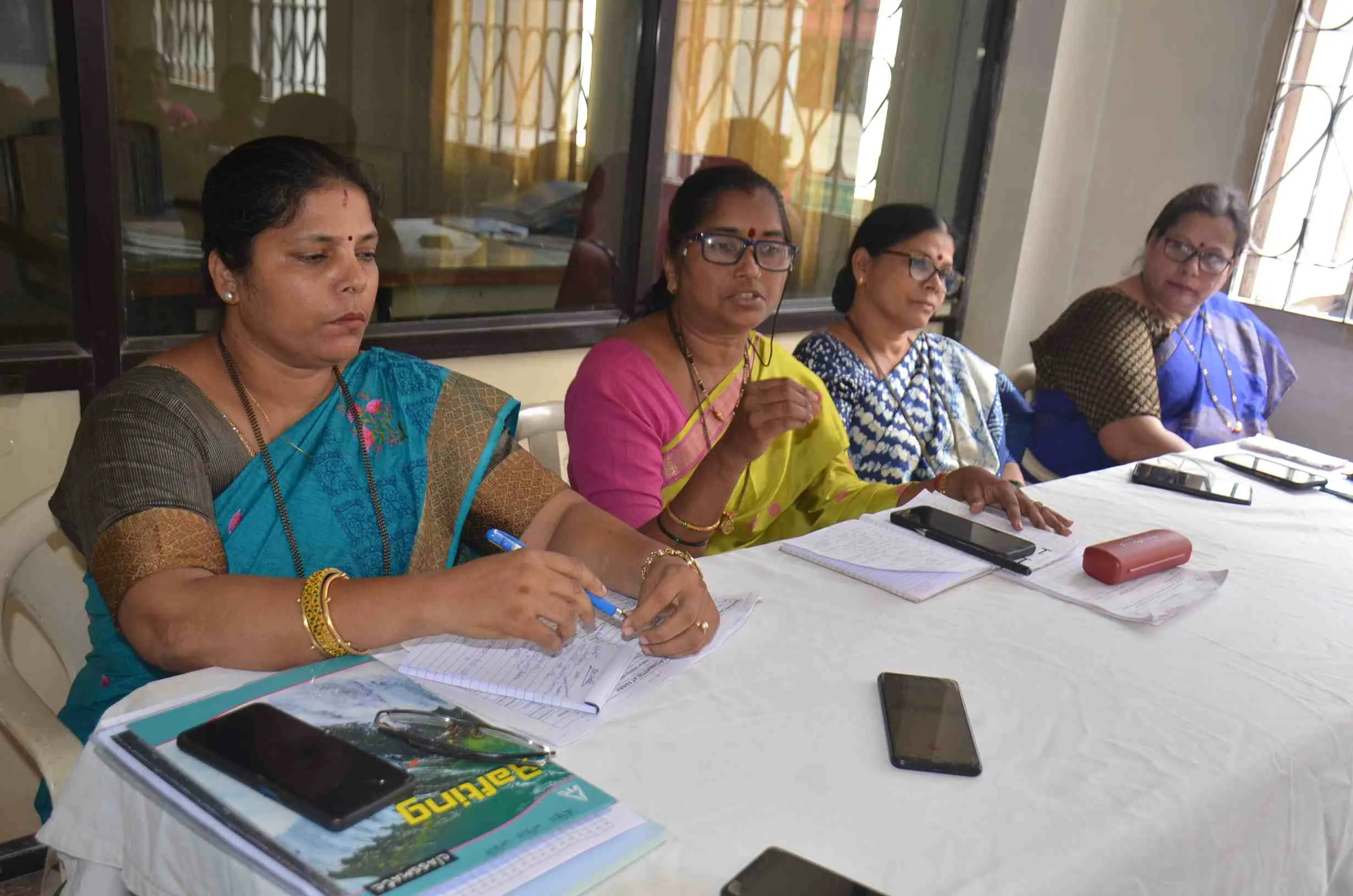 पत्रकार परिषदेत समितीच्या अध्यक्षा शुभदा कळंगुटकर,समन्वयक रंजिता वाघूर्मेकर यांनी उत्कर्षा बाणास्तरकर व मिलन कामुलकर यांच्या उपस्थिती