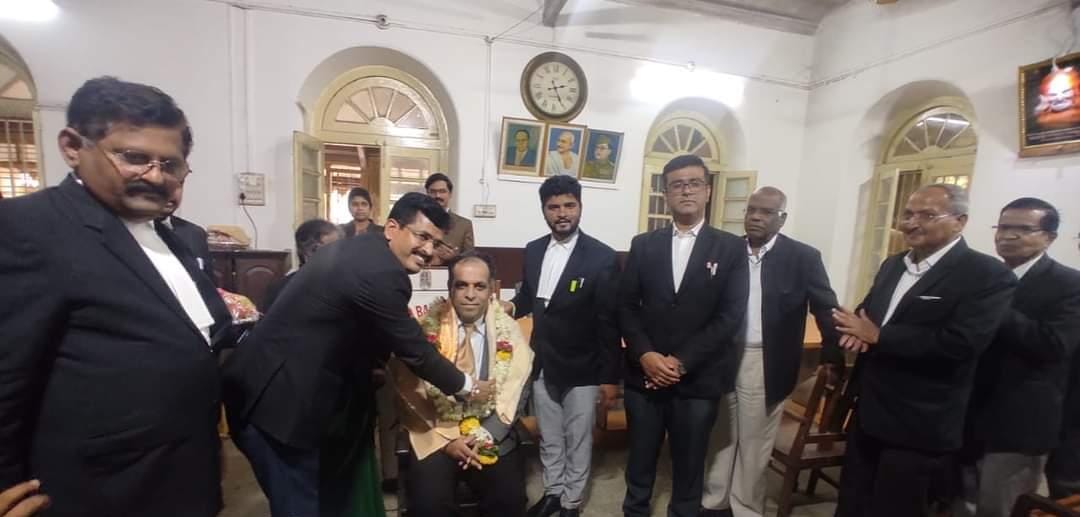 बेळगाव : बेळगाव बार असोशिएशनतर्फे बेळगाव न्यायालयातील बढ़तीनिमित्त बदली झालेल्या तीन न्यायाधिशांचा गणपती भट, प्रधान दिवाणी न्यायाधिश द्वितीय श्रेणी शर्मिला कामत, प्रथम अतिरिक्त दिवाणी न्यायाधिश द्वितीय श्रेणी व थी संजीवकुमार वं हिंडोड्डी, साळवे ओ. एम.एफ.सी. यांचा शाल, श्रीफळ व पुष्पहार घालून सन्मान करण्यात आला.